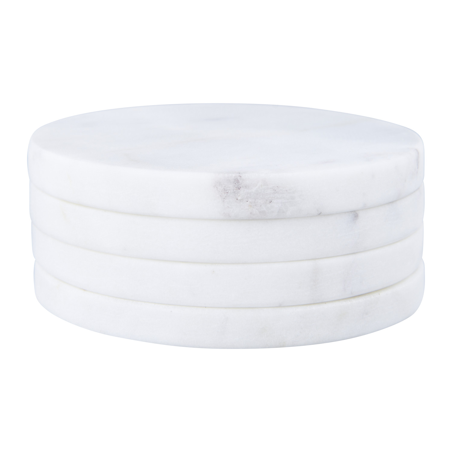 Catalog Name: 4" Round Marble Coasters w/ Mango Wood Holder, White & Natural, Set of 5