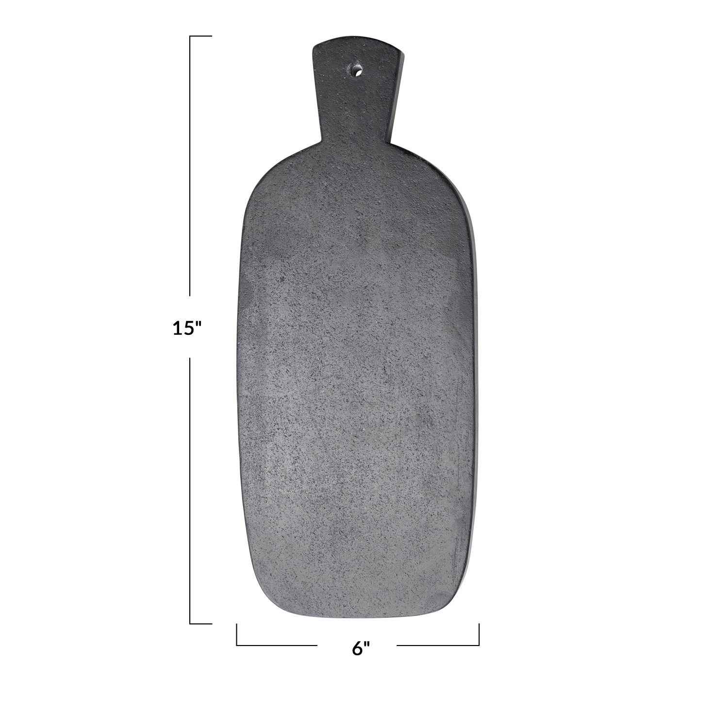 This slim marble cutting or charcuterie board with a handle is a sleek and elegant accessory for the kitchen. It features a solid marble surface with a smooth and delicate texture and a black color, creating a sleek and elegant look. The marble is also luxurious and durable, making it an ideal choice for cutting, serving, or displaying food. The board also has an integrated handle that makes it easy to carry and hang when unused. Whether slicing cheese or serving charcuterie, this board will impress with its style and functionality. It measures 15 inches long and 6 inches wide, giving ample room to work with. This cutting board will make a great addition to the kitchen or a thoughtful gift for someone special. A sleek and elegant cutting or charcuterie board made of solid marble with a black color and an integrated handle. Ideal for adding a touch of farmhouse, industrial and minimalist to the kitchen or dining table. Hand wash only with mild soap and water, and dry thoroughly. Made from marble.