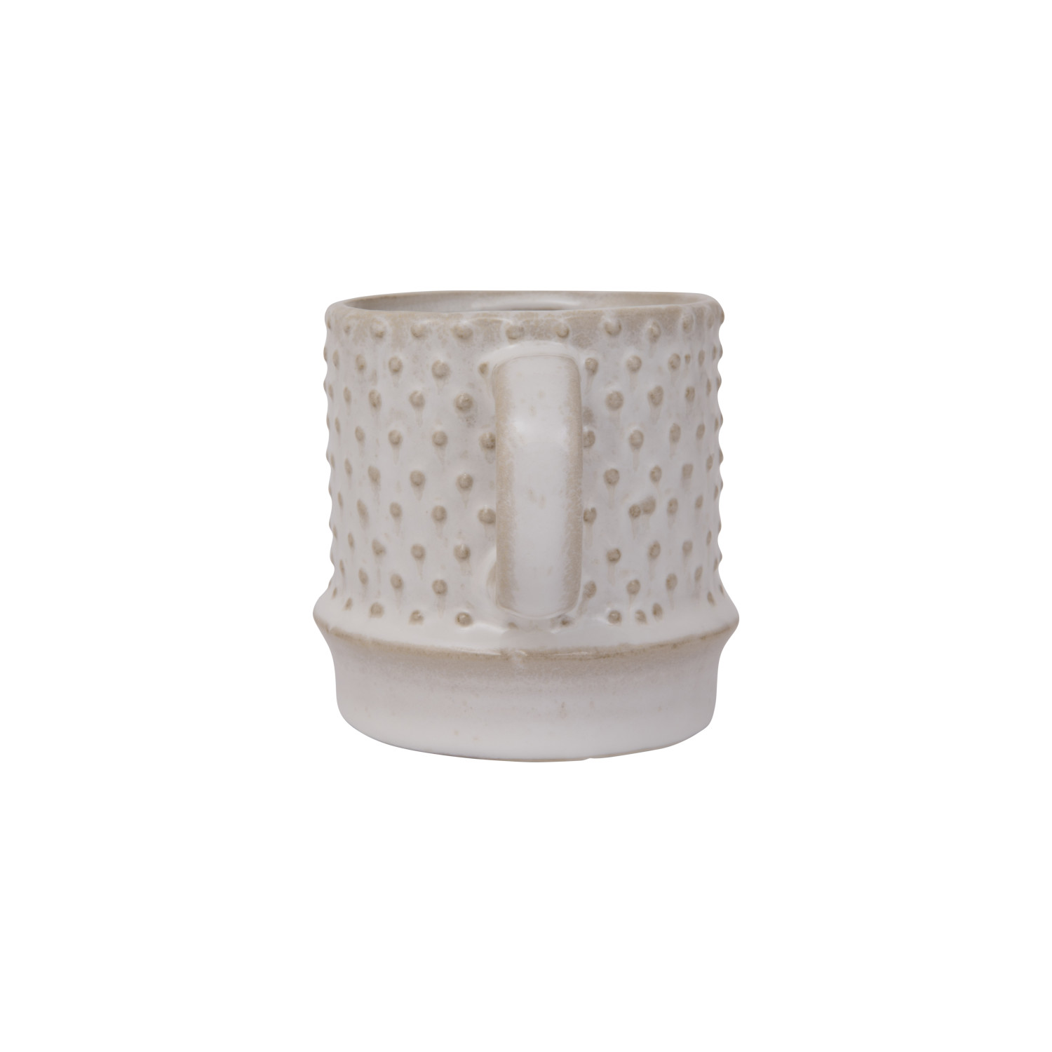 Catalog Name: 3" Round x 3-3/4"H 12 oz. Embossed Stoneware Hobnail Mug, Reactive Glaze, White (Each One Will Vary)