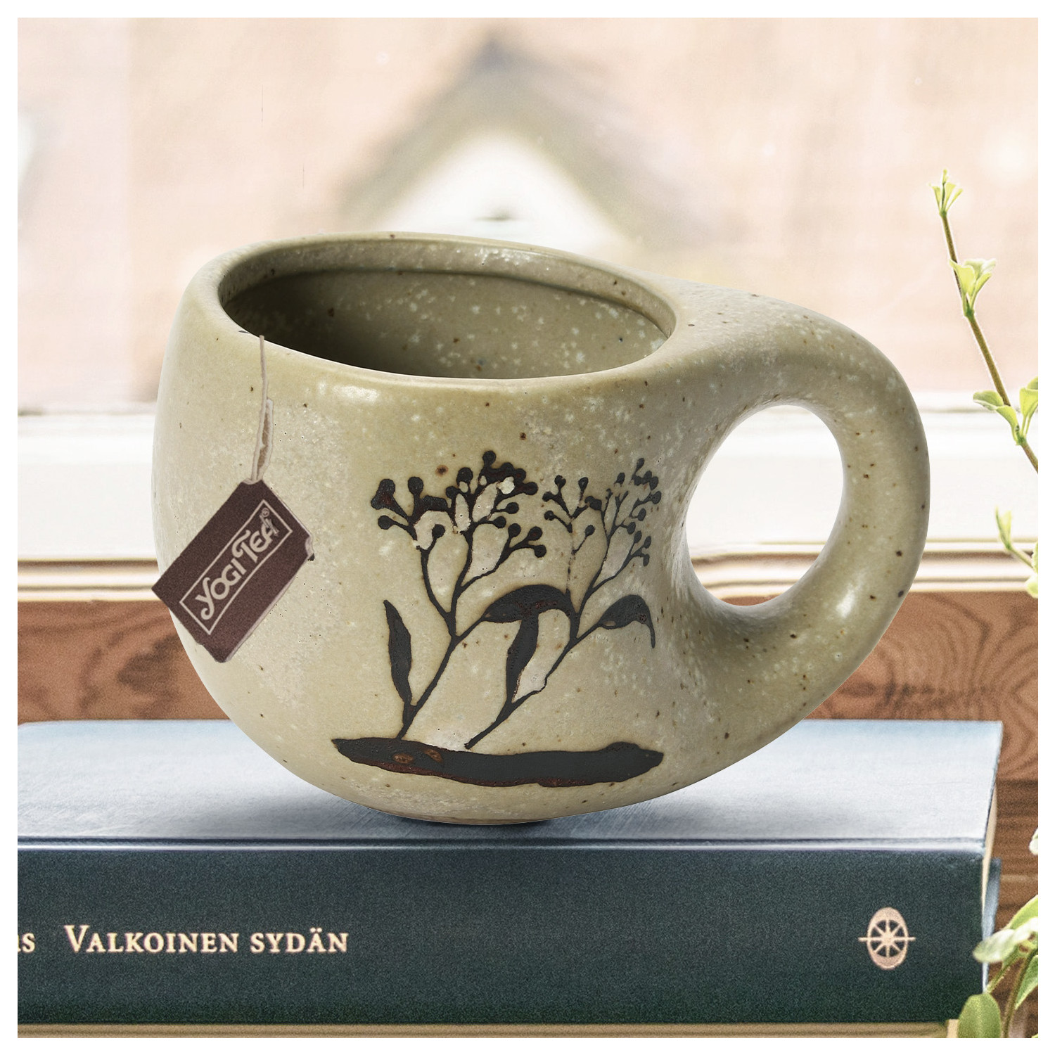 12 oz. Stoneware Mug w/ Wax Relief Floral Image, Reactive Glaze