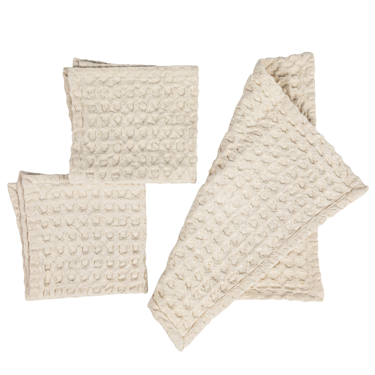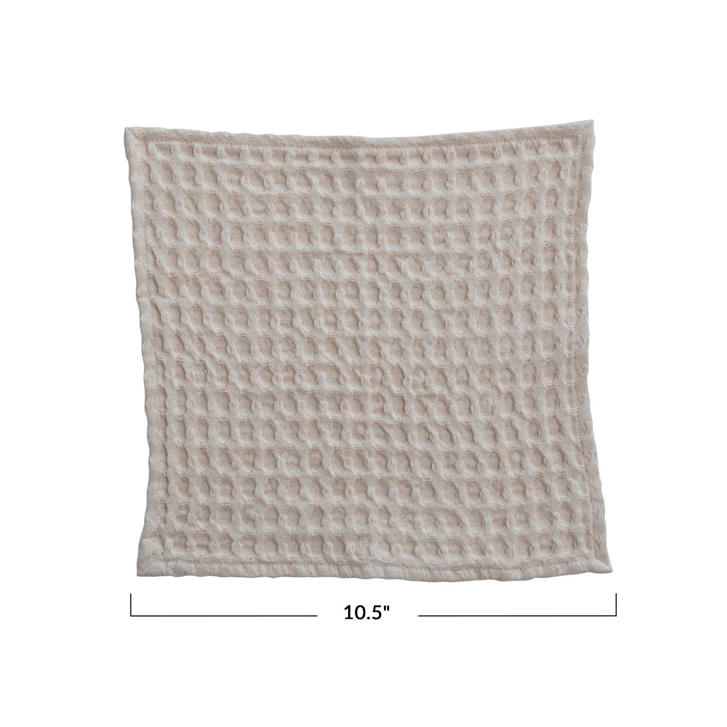 Catalog Name: 10-1/2" Square Stonewashed Cotton Waffle Weave Dish Cloths, Natural, Set of 3 Tied w/ Cotton Tape