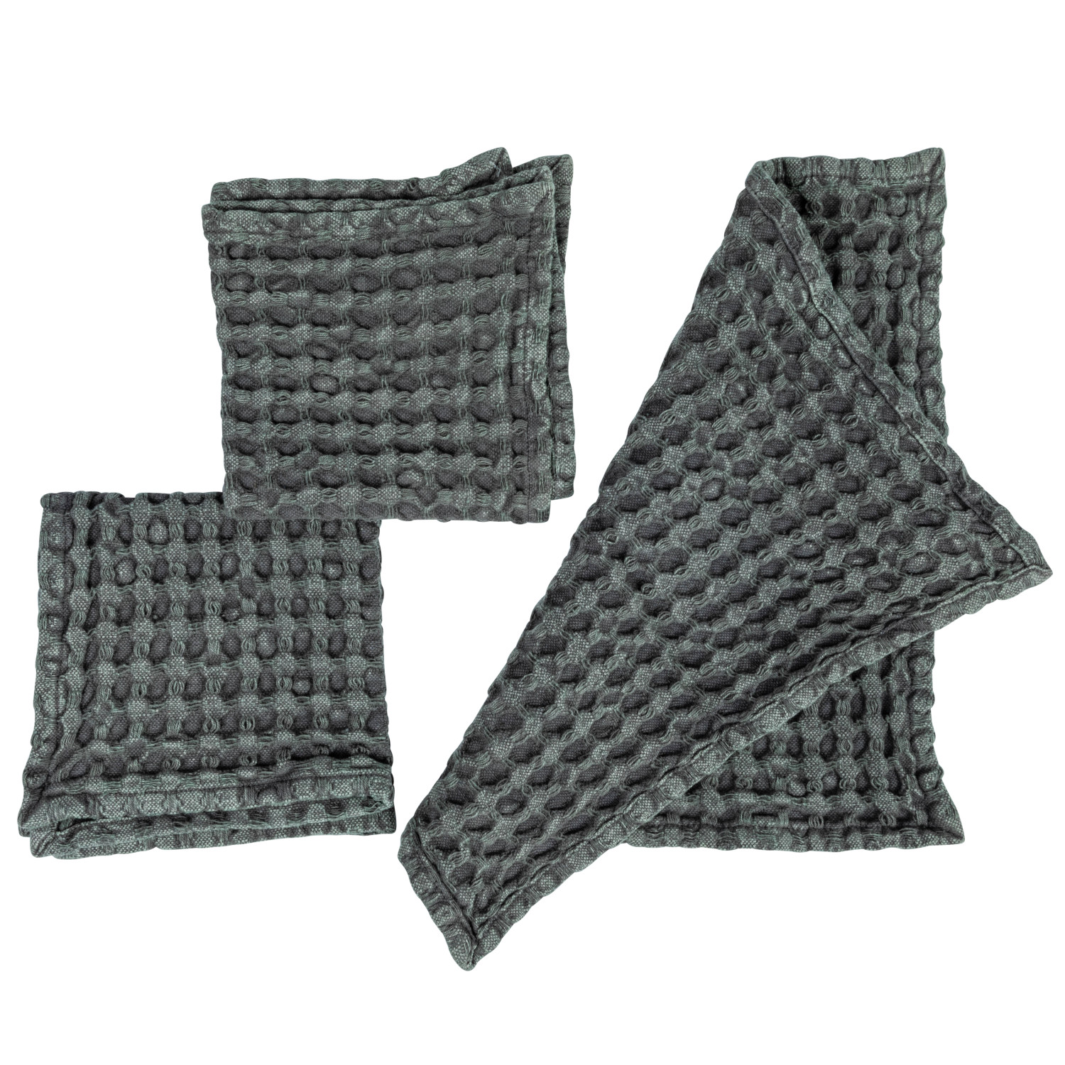 Catalog Name: 10-1/2" Square Stonewashed Cotton Waffle Weave Dish Cloths, Charcoal Color, Set of 3