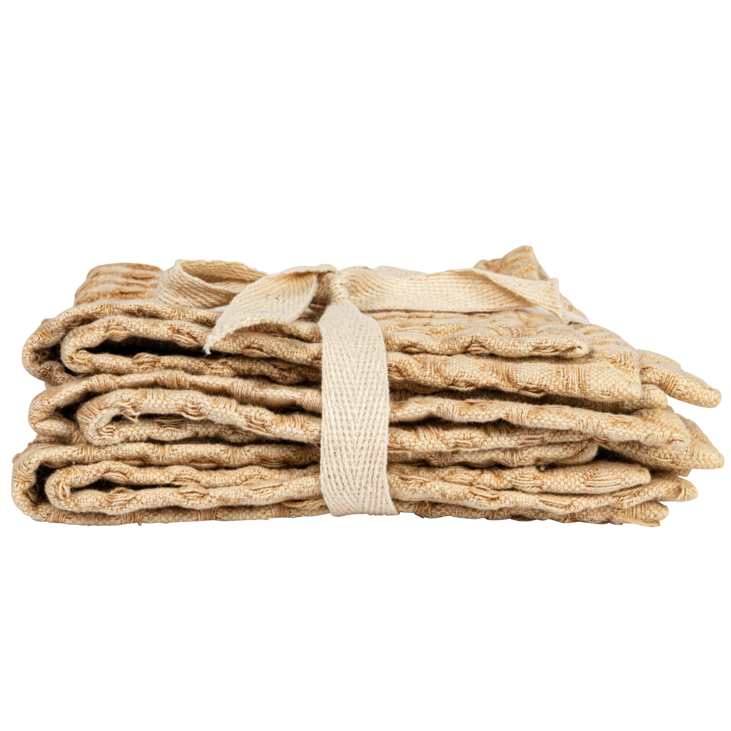 Catalog Name: 10-1/2" Square Stonewashed Cotton Waffle Weave Dish Cloths, Camel Color, Set of 3 Tied w/ Cotton Tape