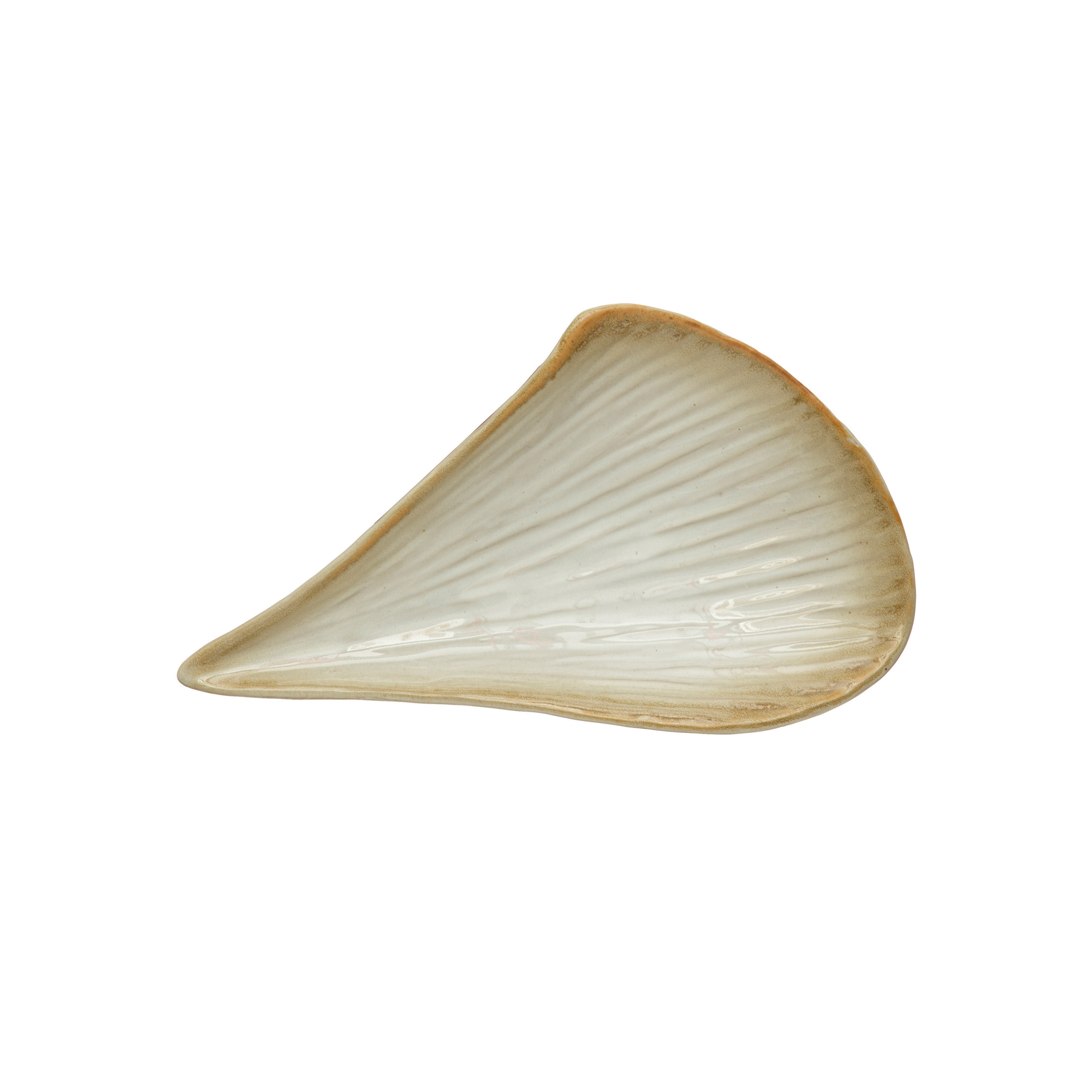 Catalog Name: 10-1/2"L x 6-1/4"W x 1-3/4"H Stoneware Pleated Plate, Reactive Glaze, Cream Color (Each One Will Vary)