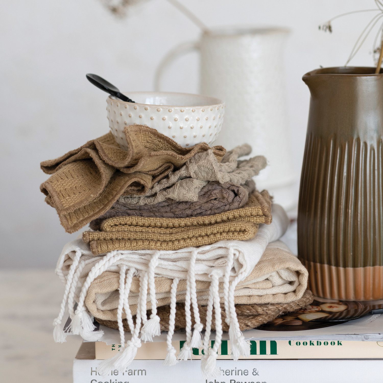 30 oz. Stoneware Ribbed Pitcher, Reactive Glaze