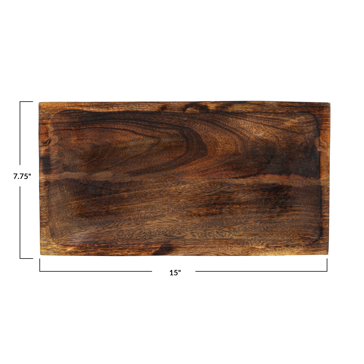 Catalog Name: 15"L x 7-3/4"W Hand-Carved Mango Wood Tray, Burnt Finish