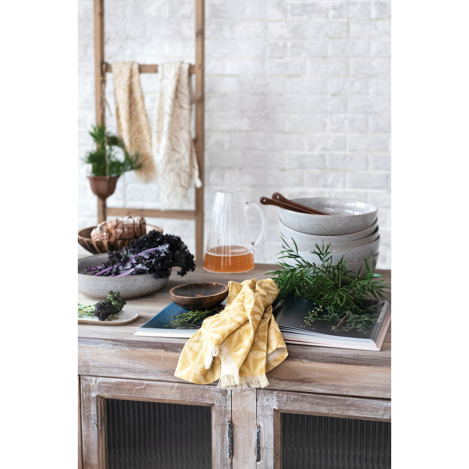 These collections of serving pieces are a must-have for every kitchen for those who love to cook and serve delicious food. They can find the ideal dishes for every table in classic white, vibrant colors, or modern patterns. The serving pieces come in various shapes, sizes, and materials, such as ceramic, stoneware, porcelain, or glass. They can create their unique style by mixing and matching them or choose a matching set for a coordinated look. These serveware are not only picture-worthy, but also durable, microwave-safe, and dishwasher-safe. These collections of serving pieces will make every meal more fun and memorable, whether they are hosting a dinner party, a family gathering, or a casual brunch. The Ribbed Glass Pitcher features a sleek and transparent glass design that allows anyone to showcase any refreshing drinks, while the ribbed pattern adds visual interest and a subtle tactile element. This pitcher effortlessly complements various home decor styles, including contemporary, traditional, and farmhouse, making it a versatile addition to any serveware collection. This pitcher has a 60-ounce capacity for serving various cold beverages and features a comfortable handle, a wide opening, and a stylish design. Made of glass.
