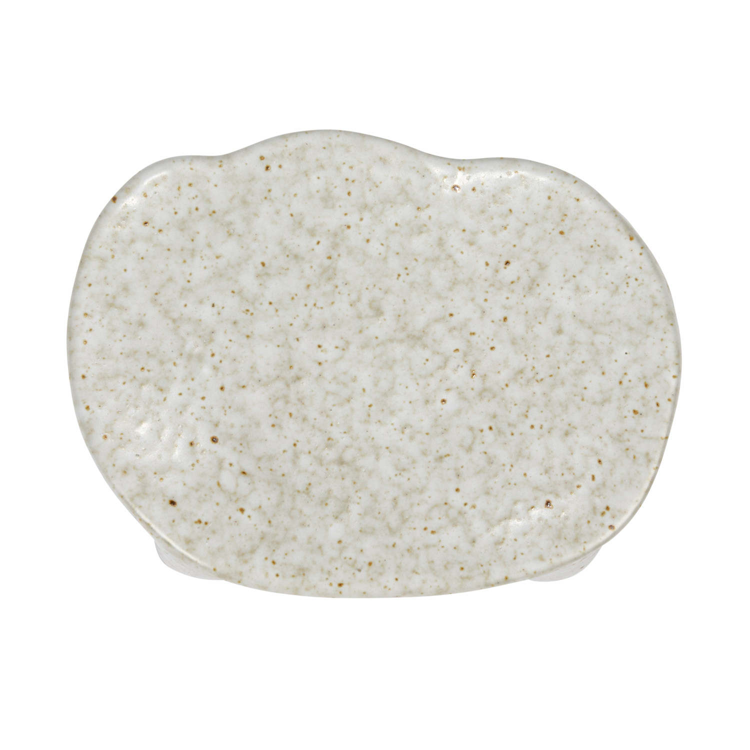 Catalog Name: 4-1/2"L x 3-1/2"W x 1-1/2"H Stoneware Footed Dish, Reactive Glaze, Cream Color Speckled (Each One Will Vary)