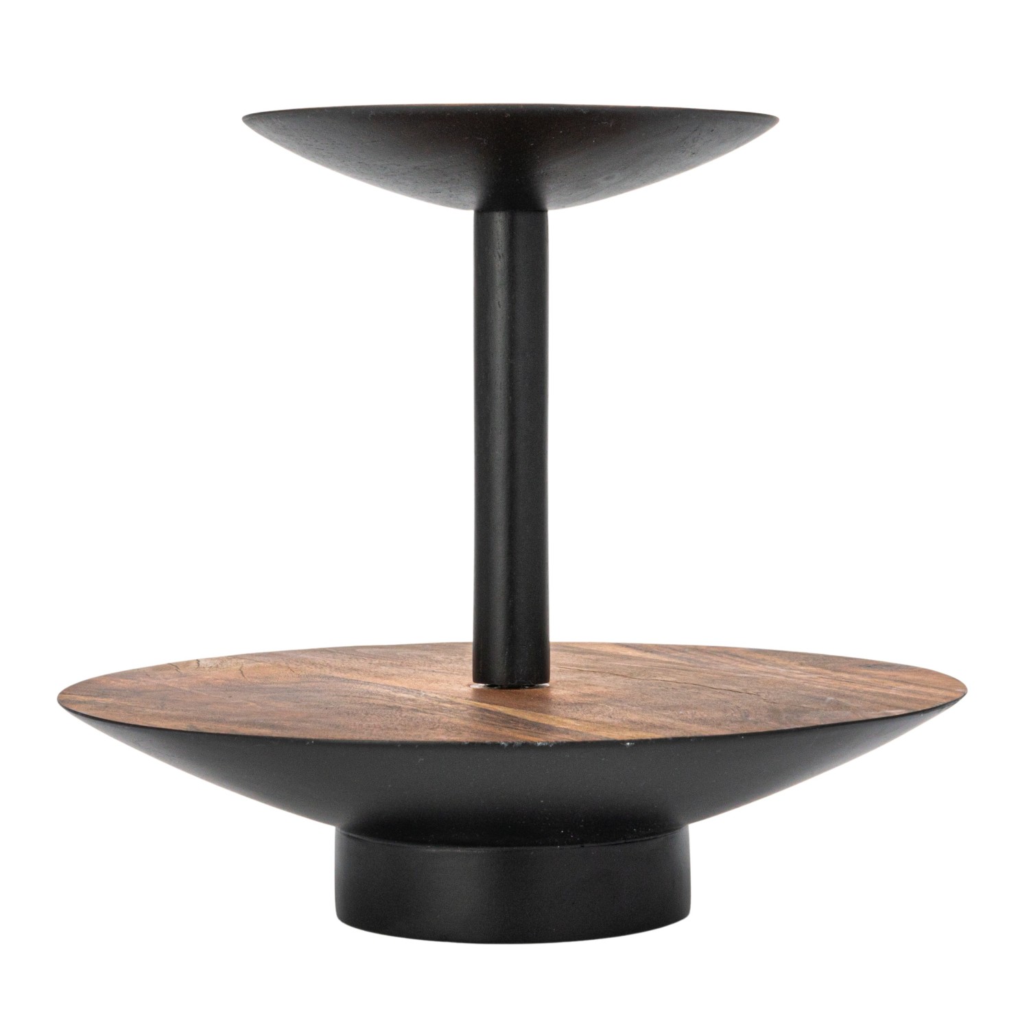 Catalog Name: 9-3/4" Round x 9"H Acacia Wood 2-Tier Tray, Natural & Black, KD