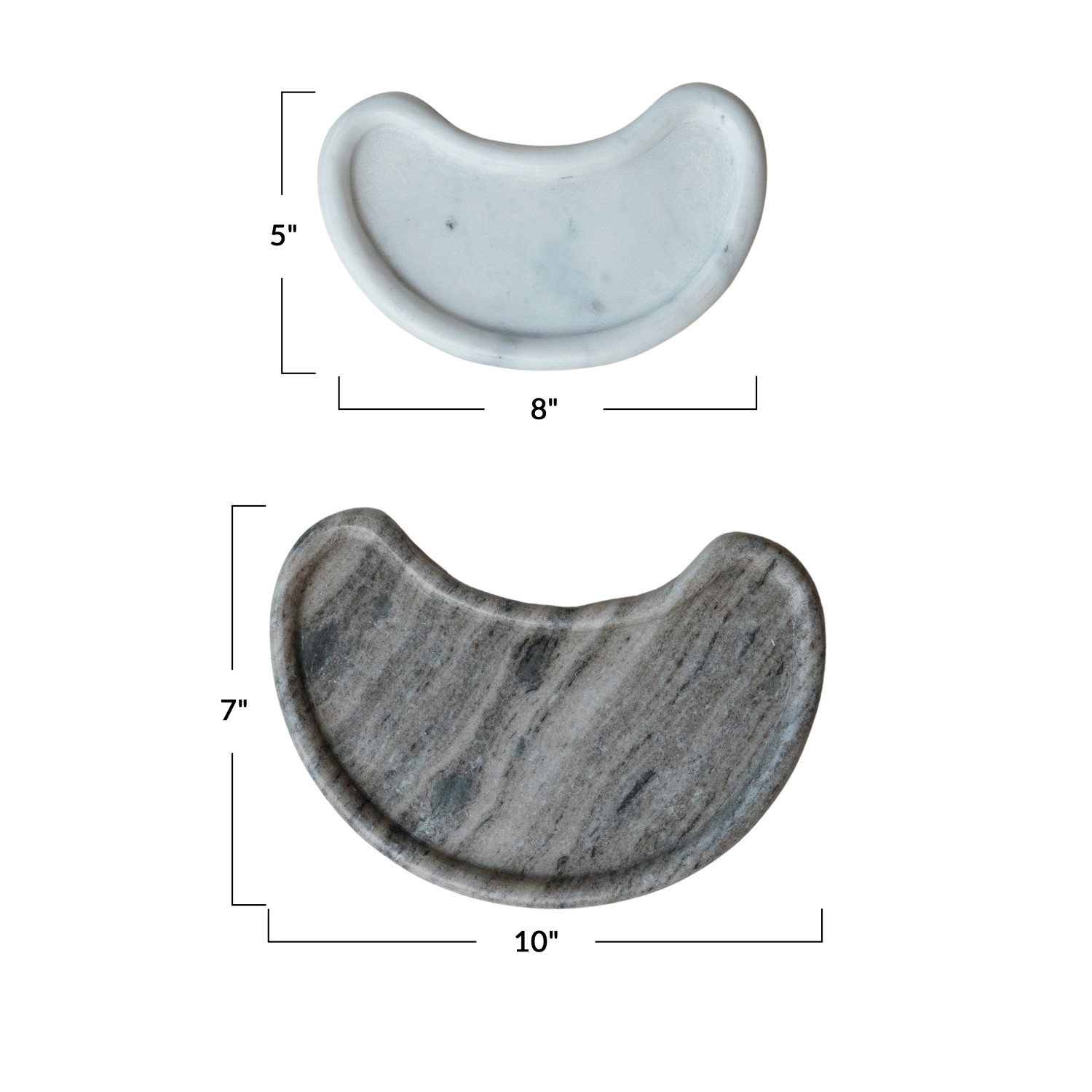 Catalog Name: 10"L x 7"W x 1"H & 8"L x 5"W x 1"H Marble Kidney Shaped Trays, Buff Color & White, Set of 2