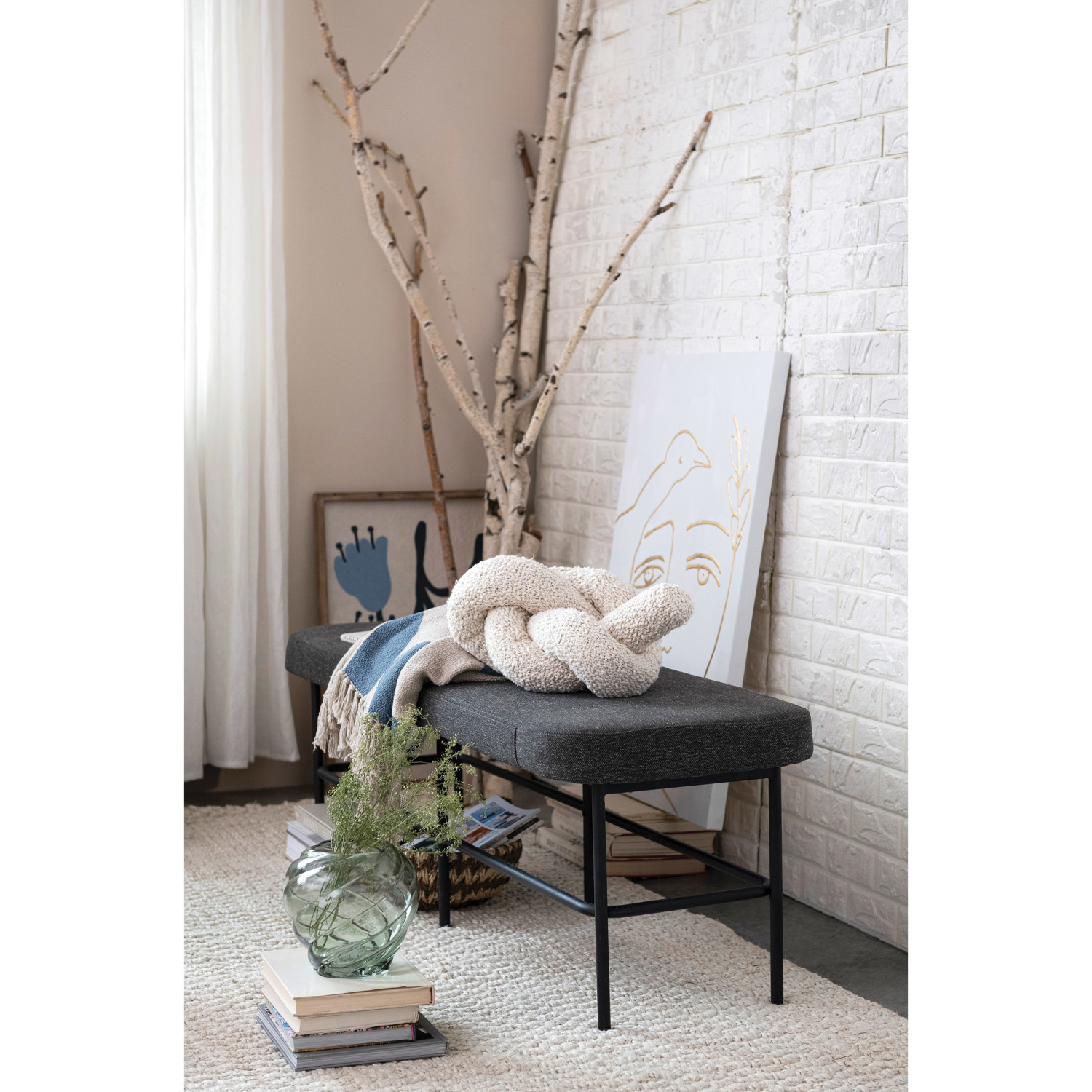 Explore a carefully curated selection of pieces including benches, day beds, poufs, foot stools, upholstered ottomans, and so much more. Choose from a wide array of materials from supple velvet and intricately woven jute to reclaimed wood and hammered metal, and styles from mid-century modern and classic farmhouse to vintage glam and boho. Choose from classic designs that exude a sense of refinement or opt for modern styles that make a statement. Anchor the design of a living space with a bold focal piece, or simply add touch of personal style to a spare room with an artfully crafted piece of furniture. This contemporary bench features a minimalist silhouette with versatile upholstery and a sleek metal frame. Display in a living space of any style from vintage to minimalist. Spot clean only. Made from iron, wood, polyester, and plastic.