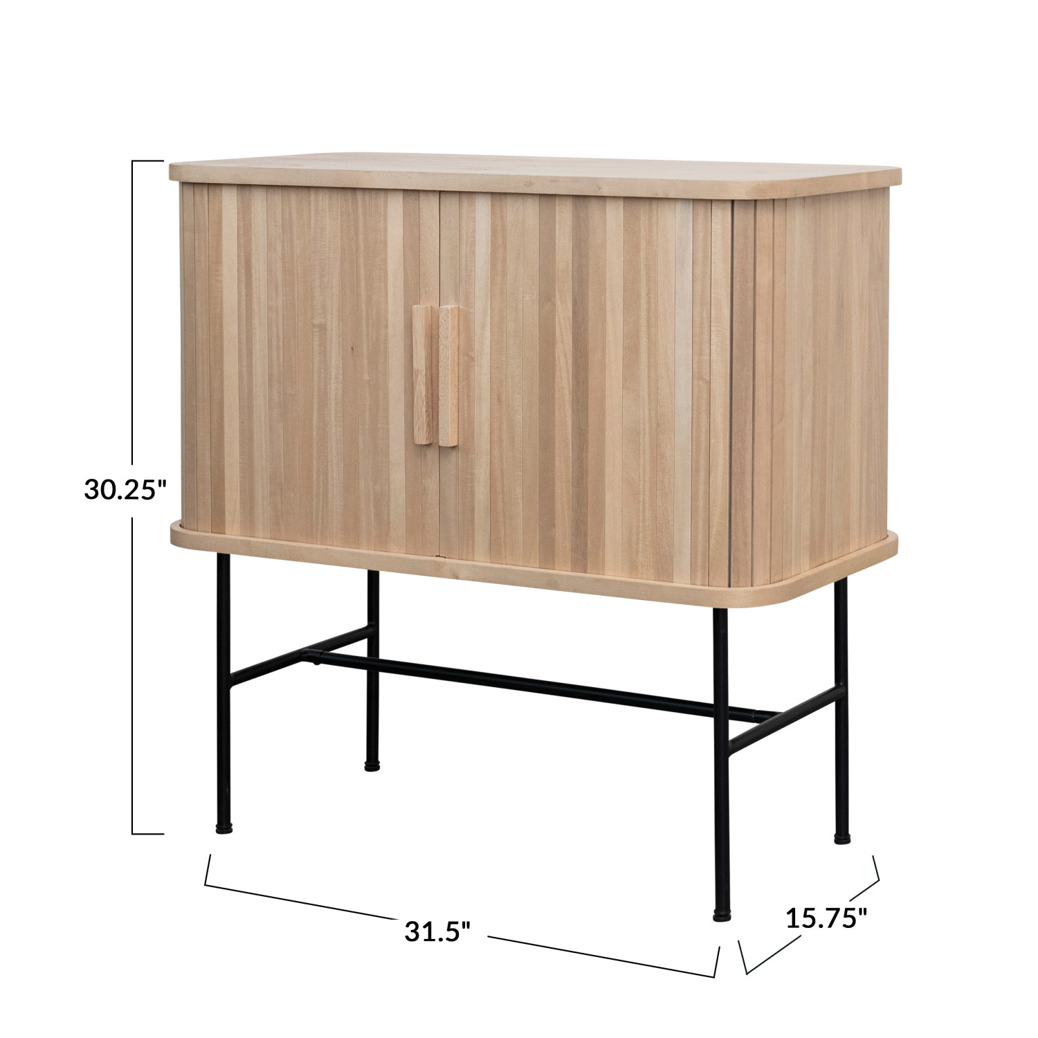 Catalog Name: 31-1/2"W x 15-3/4"D x 30-1/4"H MDF & Metal Cabinet w/ 2 Sliding Doors & 3 Compartments, Natural & Black, KD