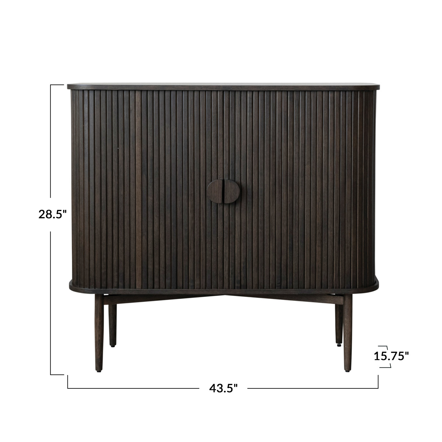 Catalog Name: 43-1/2"W x 15-3/4"D x 28-1/2"H MDF & Oak Wood Cabinet w/ 2 Sliding Doors & 2 Shelves, Walnut Finish, Truck Ship