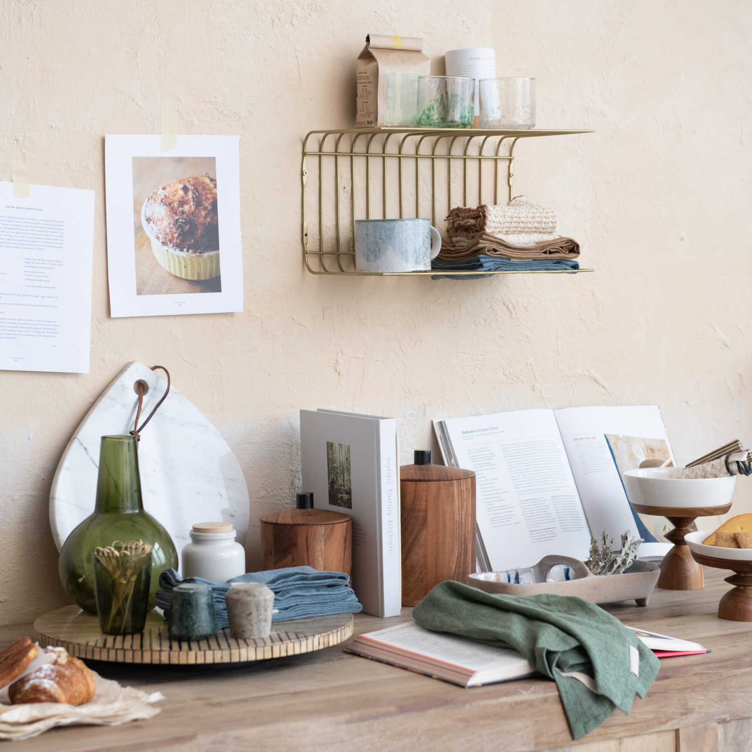 Catalog Name: 15"W x 8"D x 8-1/4"H Metal Wire Wall Shelf, Antique Brass Finish