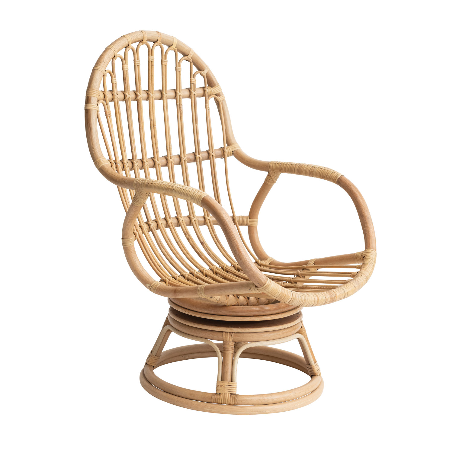 Create a space you love with our thoughtfully designed collection of sofas and chairs. Explore a carefully curated selection of pieces including loveseats, rocking chairs, armchairs, office swivel chairs, woven chaises, bar stools, couches, and so much more. Choose from a wide array of materials from supple velvet and durable linen to reclaimed wood and cotton boucle, and styles from mid-century modern and classic farmhouse to vintage glam and contemporary boho. Anchor the design of a living space with a bold focal piece, or simply add touch of personal style to a spare room with an artfully crafted piece of furniture. This boho inspired armchair features woven bamboo and rattan construction with a swiveling base. Display in a bedroom or living space of any style from Scandinavian to global. Maximum weight capacity of 250 pounds. Made from rattan.
