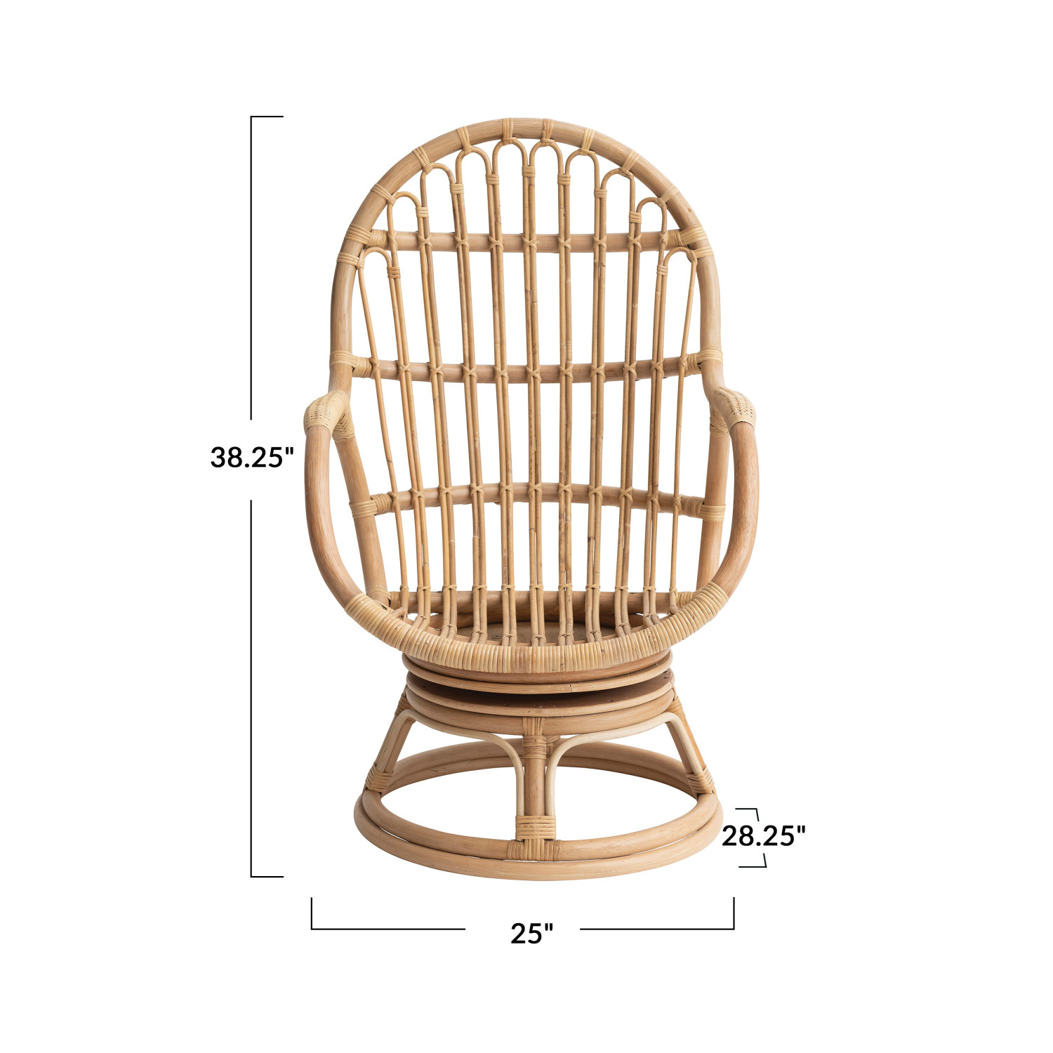 Catalog Name: 25"W x 28-1/4"D x 38-1/4"H Hand-Woven Rattan Swivel Chair, Natural, Truck Ship