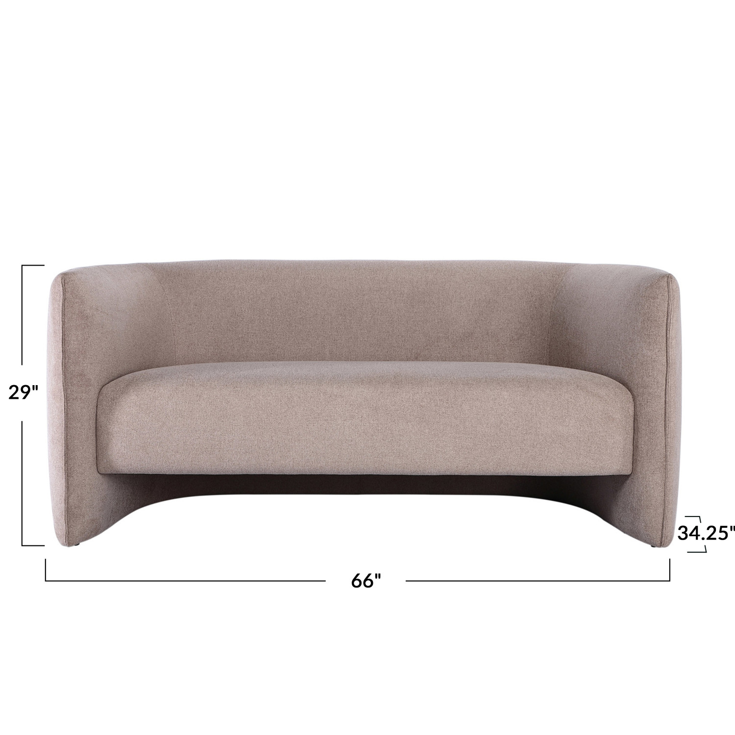 Catalog Name: 66"W x 34-1/4"D x 29"H Fabric Upholstered Curved Sofa, Tan Color, Truck Ship