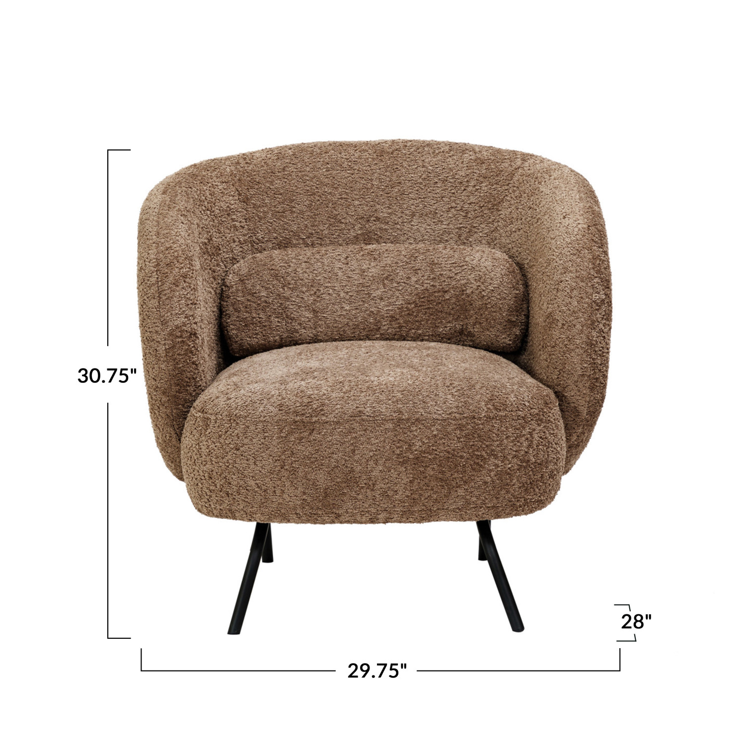 Catalog Name: 29-3/4"W x 28"D x 30-3/4"H Bouclé Fabric Upholstered Chair w/ Black Metal Legs, Taupe, Truck Ship
