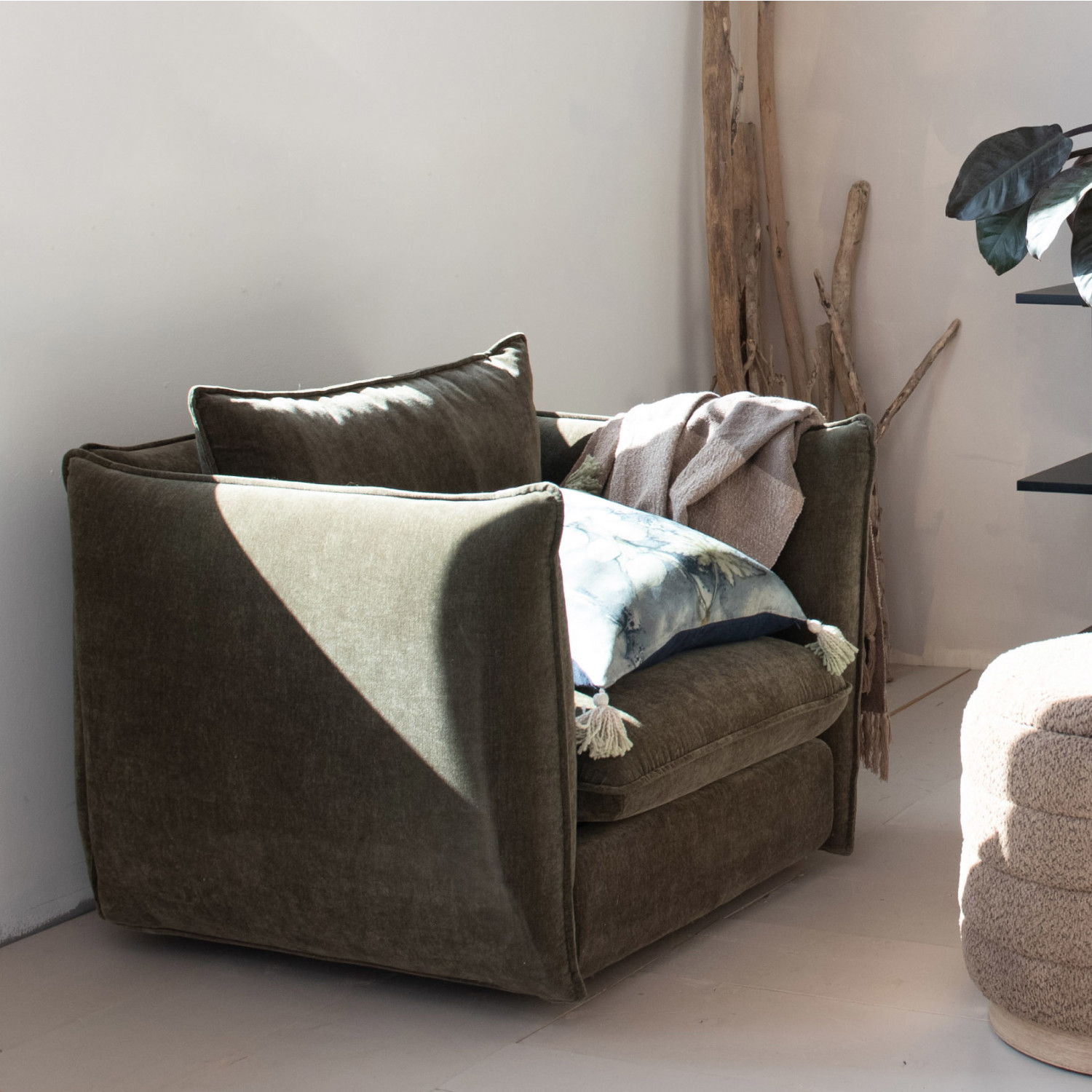 Catalog Name: 36"W x 31"D x 26"H Velvet Fabric Upholstered Arm Chair, Moss Color, Truck Ship
