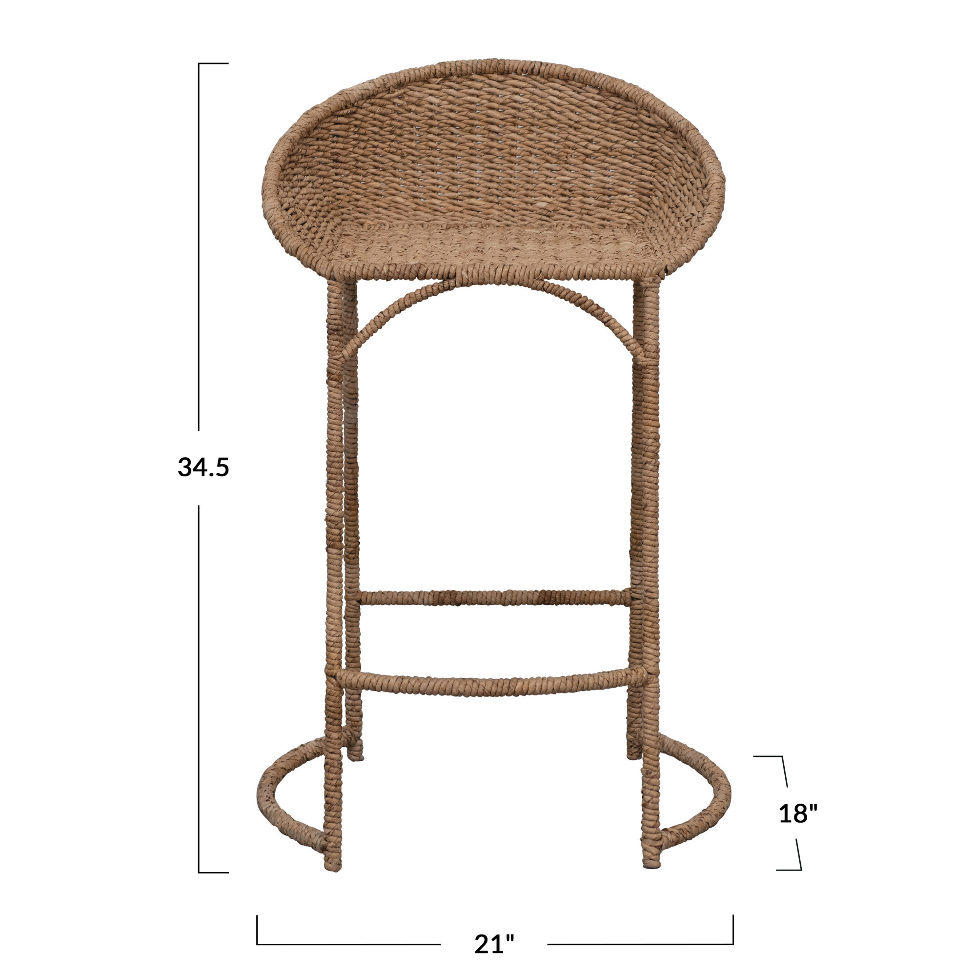 Catalog Name: 21"W x 18"D x 34-1/2"H Hand-Woven Seagrass & Metal Bar Stool, Natural