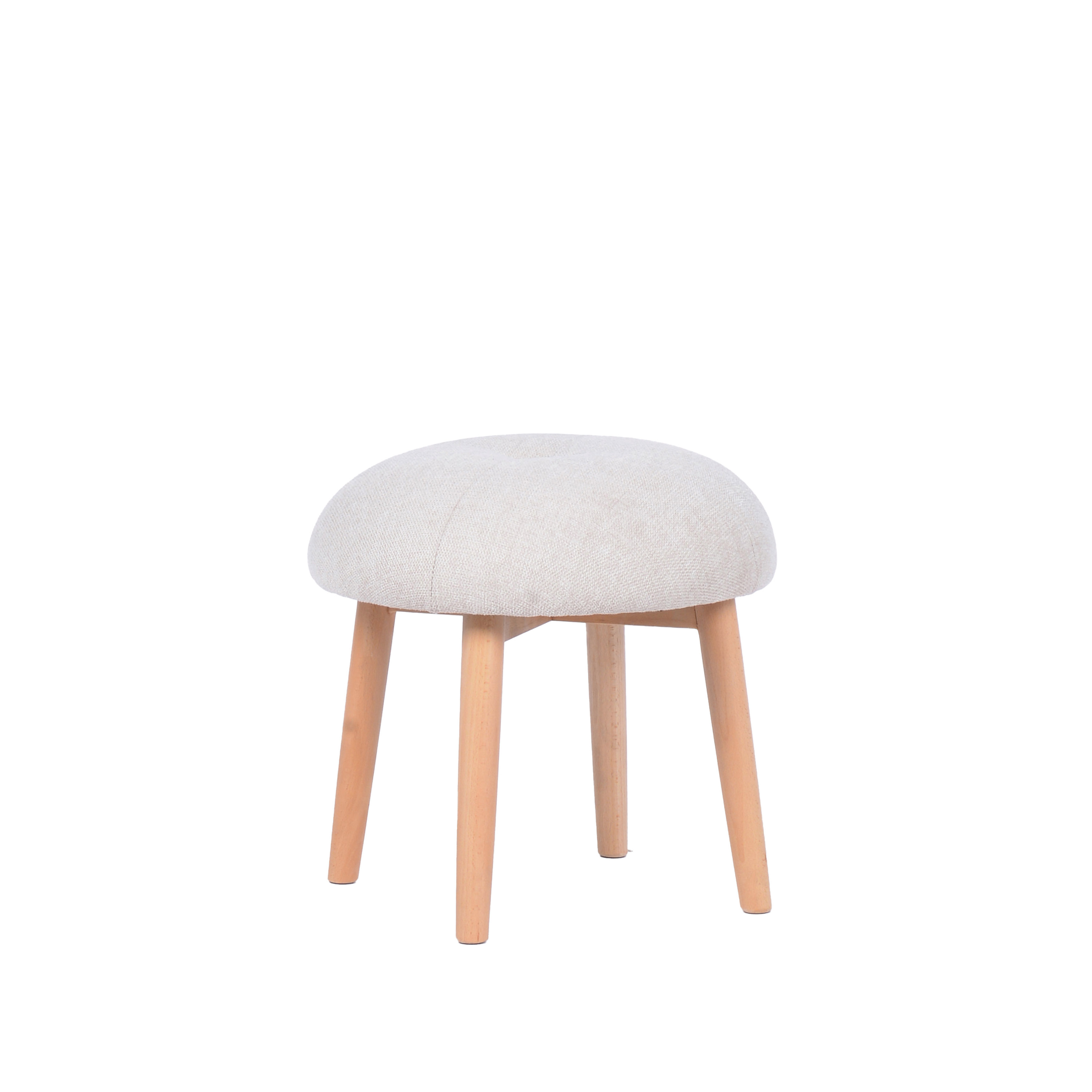 Catalog Name: 17-3/4" Round x 17-3/4"H Tufted Fabric Upholstered Stool w/ Beech Wood Legs, Linen Color & Natural
