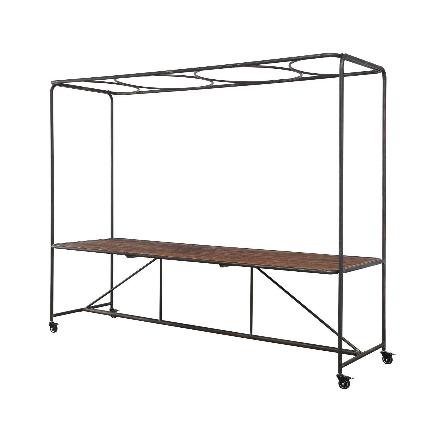 Catalog Name: 111-1/4"L x 35-1/2"W x 86-3/4"H Metal & Wood Table/Rack on Casters w/ Trellis, Black & Natural, KD, Truck Ship