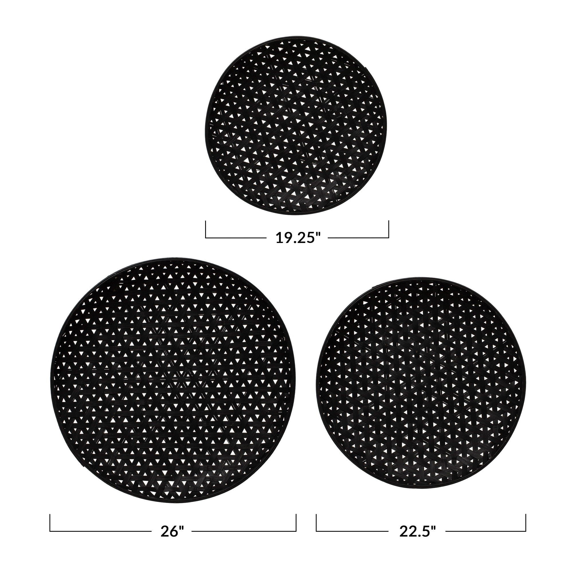 Catalog Name: 26" Round, 22-1/2" Round & 19-1/4" Round Hand-Woven Bamboo Baskets, Black, Set of 3