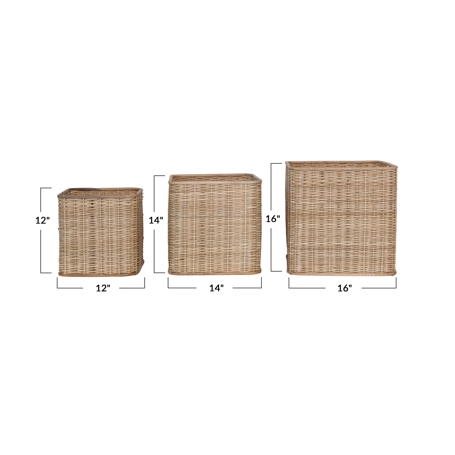 Catalog Name: 16" Square x 16"H, 14" Square x 14"H & 12" Square x 12"H Hand-Woven Palm & Rattan Baskets w/ Handles, Natural, Set of 3