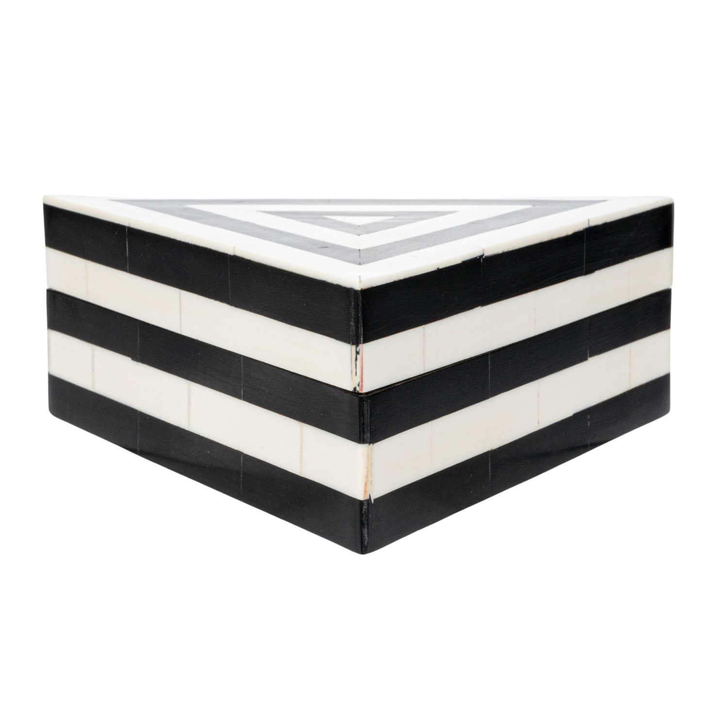 Catalog Name: 7"L x 6"W x 2-1/2"H MDF & Resin Triangular Striped Box w/ Lid, Black & White
