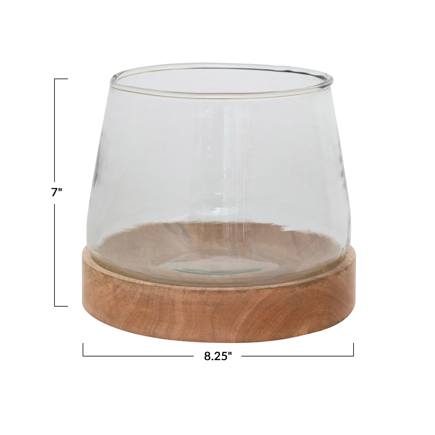 Catalog Name: 8-1/4" Round x 7"H Glass Hurricane/Vase w/ Mango Wood Base, Natural, Set of 2