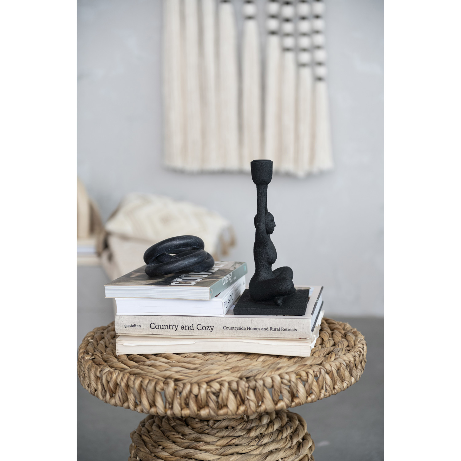 Catalog Name: 6"L x 4-1/4"W x 9-1/4"H Resin Sitting Figure Taper Holder, Black