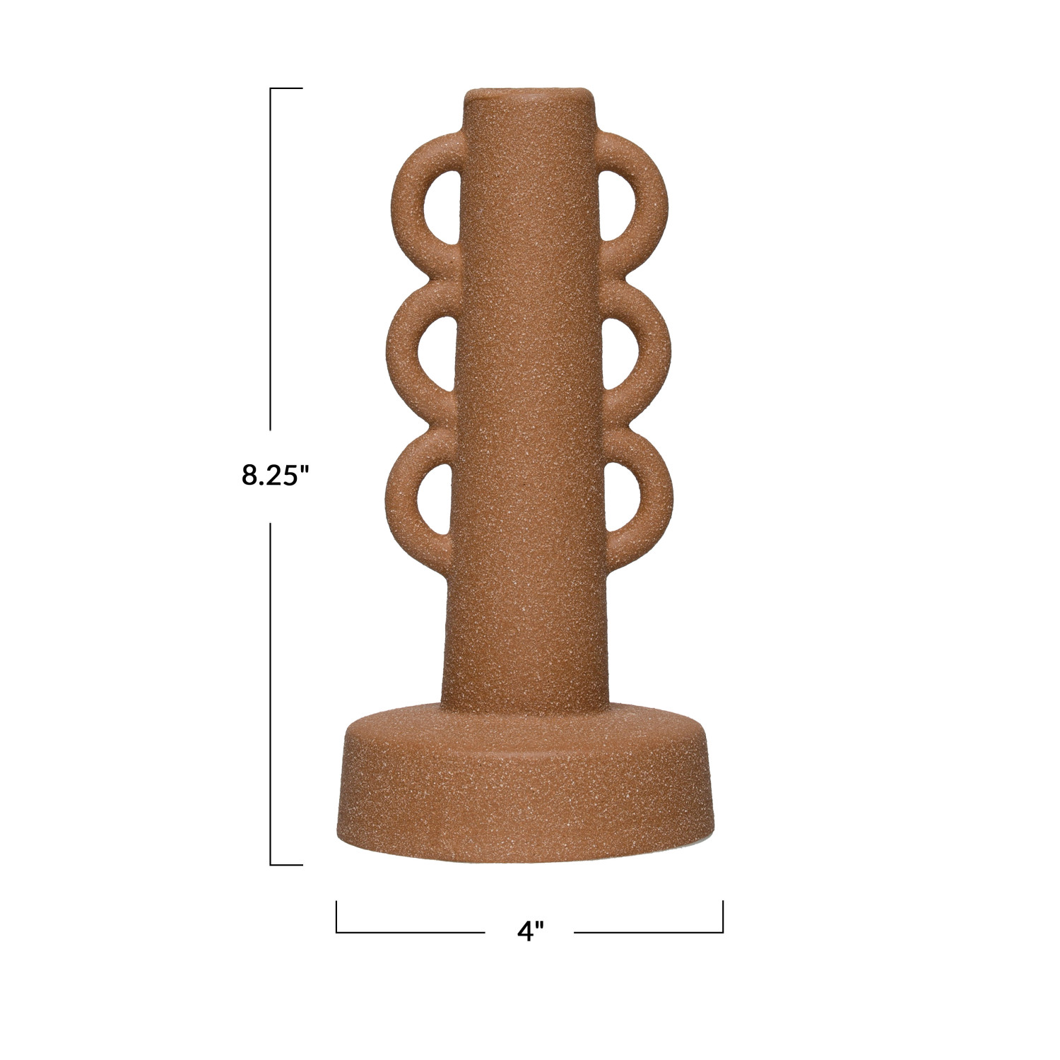 Catalog Name: 4" Round x 8-1/4"H Stoneware Taper Holder, Sand Finish, Terra-cotta Color