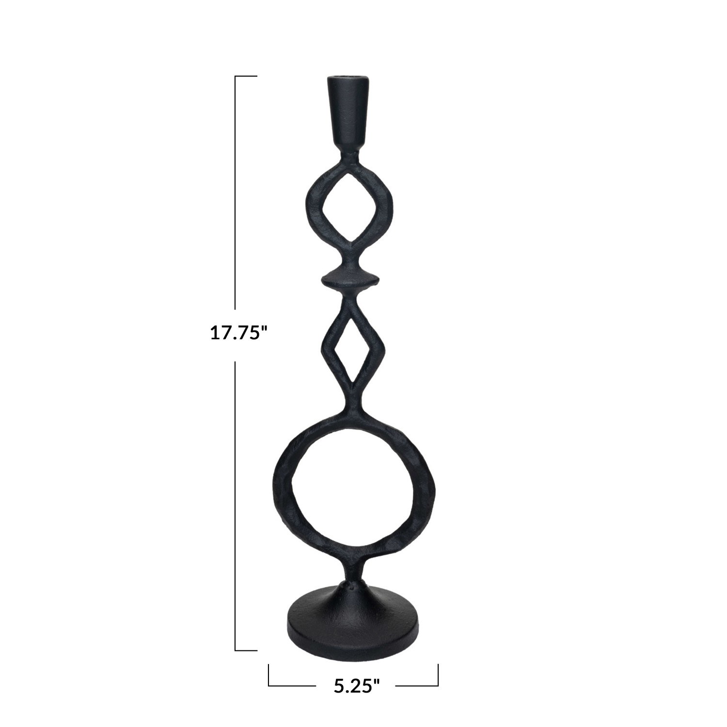 Catalog Name: 5-1/4"L x 4-1/4"W x 17-3/4"H Cast Iron Taper Holder, Matte Black