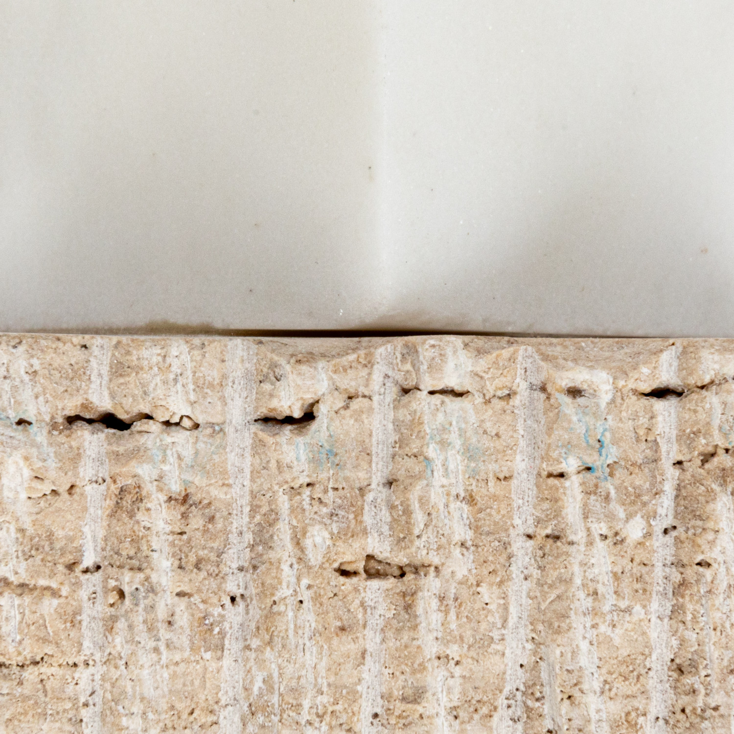 Catalog Name: 3-1/4" Square x 2-1/2"H Marble & Travertine Tealight Holder, White & Natural