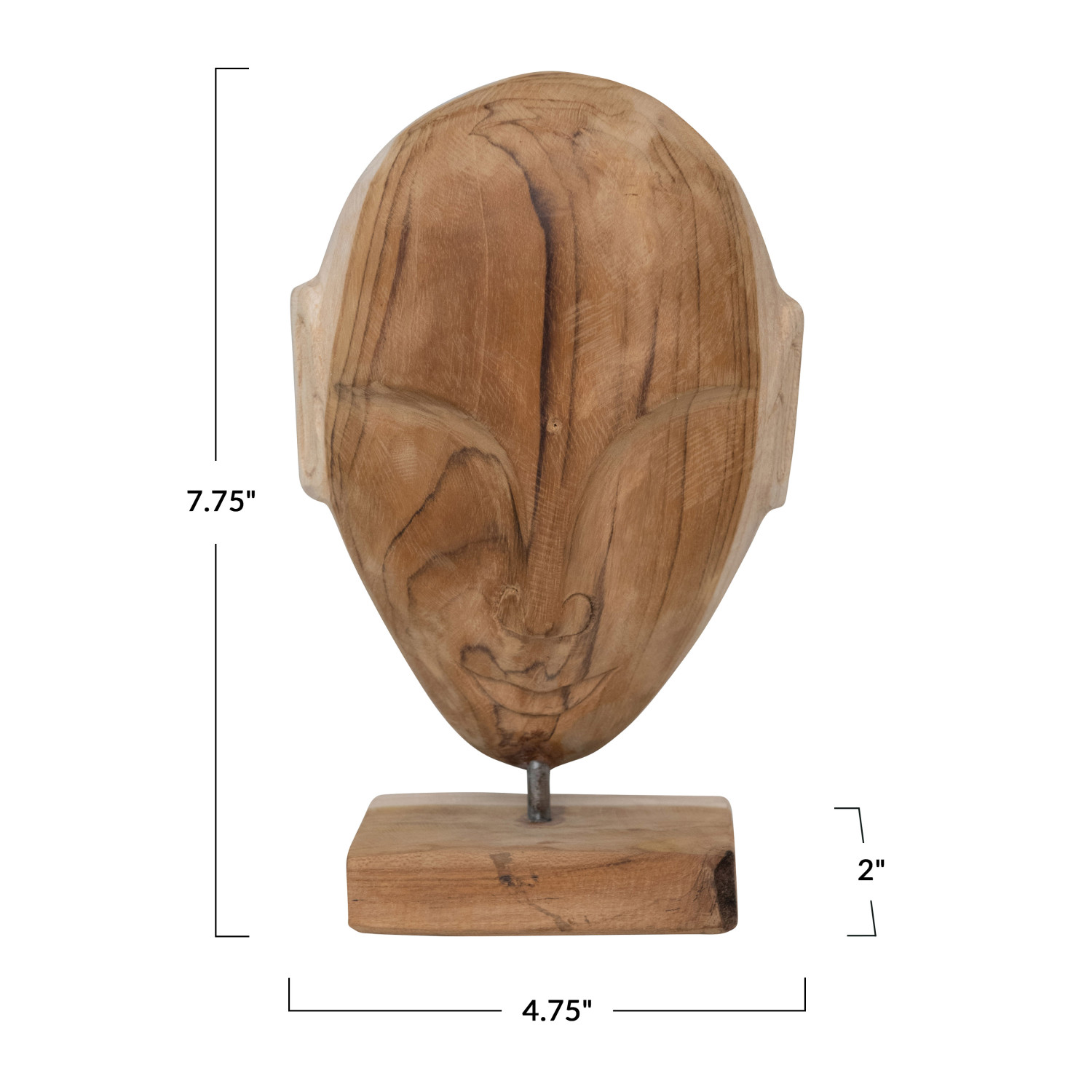 Catalog Name: 5"L x 2-1/4"W x 8"H Hand-Carved Teakwood Face on Stand, Natural (Each One Will Vary)