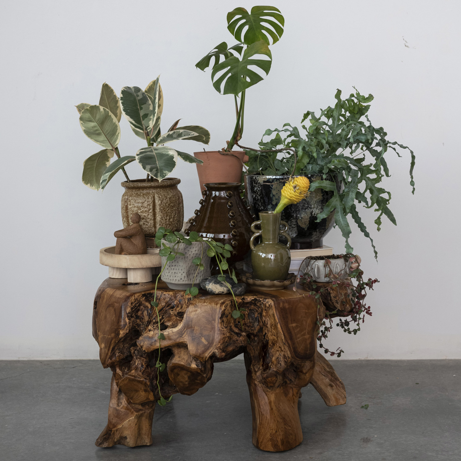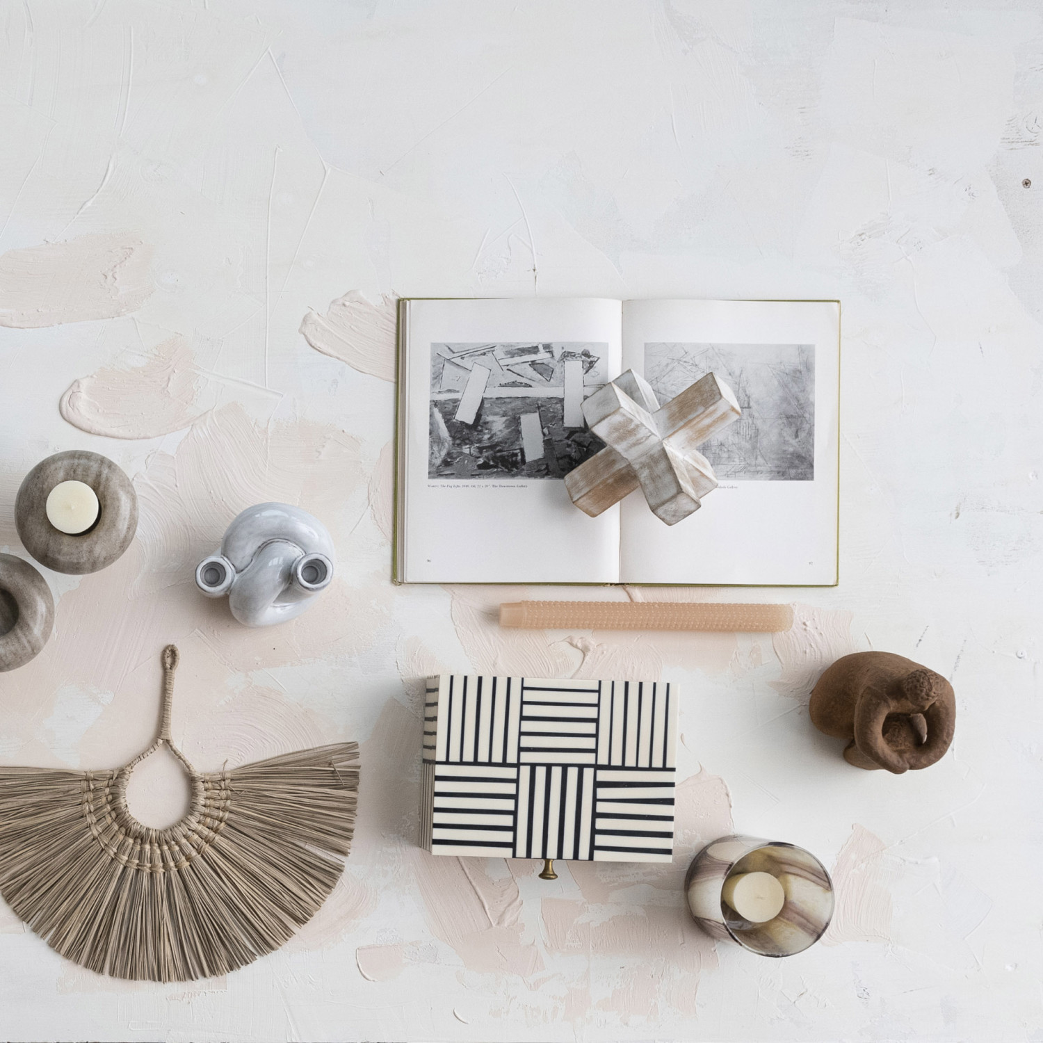 These collections of decorative storage and accents available offer the potential to elevate any home or office space while providing practical storage solutions. From rustic figurines and hanging shelves to modern baskets and whimsical boxes, a diverse range of designs awaits every choice. Discover an array of decorative accents, including pillows, vases, sculptures, and more, that will infuse every room with personality and charm. Effortlessly mix and match these items to curate a uniquely owned style or opt for a coordinated set to achieve a harmonious aesthetic. Rest assured, these products exemplify exceptional quality, durability, and aesthetic appeal. Admire the tranquil beauty and artistry of this Stoneware Sitting Woman Sculpture, featuring a stunning reactive glaze and a captivating matte terra-cotta color that exudes warmth and sophistication. Complements natural textures, organic elements, and warm color palettes, adding an artistic touch to the décor. Bring elegance to every dining table, or add a touch of sophistication to a console table with this captivating sculpture. Made from Stoneware.