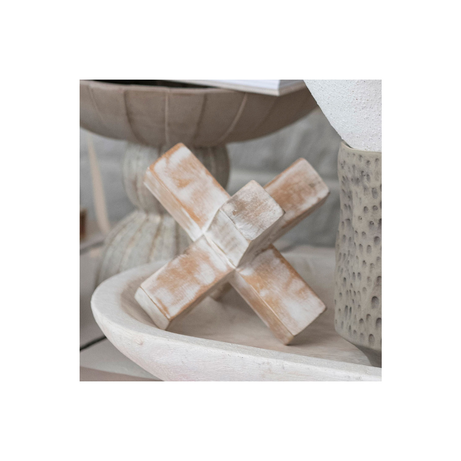 These collections of decorative storage and accents available offer the potential to elevate any home or office space while providing practical storage solutions. From rustic figurines and hanging shelves to modern baskets and whimsical boxes, a diverse range of designs awaits every choice. Discover an array of decorative accents, including pillows, vases, sculptures, and more, that will infuse every room with personality and charm. Effortlessly mix and match these items to curate a uniquely owned style or opt for a coordinated set to achieve a harmonious aesthetic. Rest assured, these products exemplify exceptional quality, durability, and aesthetic appeal. Crafted from rich mango wood, this piece showcases intricate cross patterns that symbolize balance and unity, while its compact size and elegant design make it a captivating addition to every home. This piece is best suited for homes with a modern, contemporary, or eclectic style. Can work on every mantelpiece with this striking table décor, on every dining table to spark conversations, or on every console table for a visually appealing display. Purely made from Mango Wood.