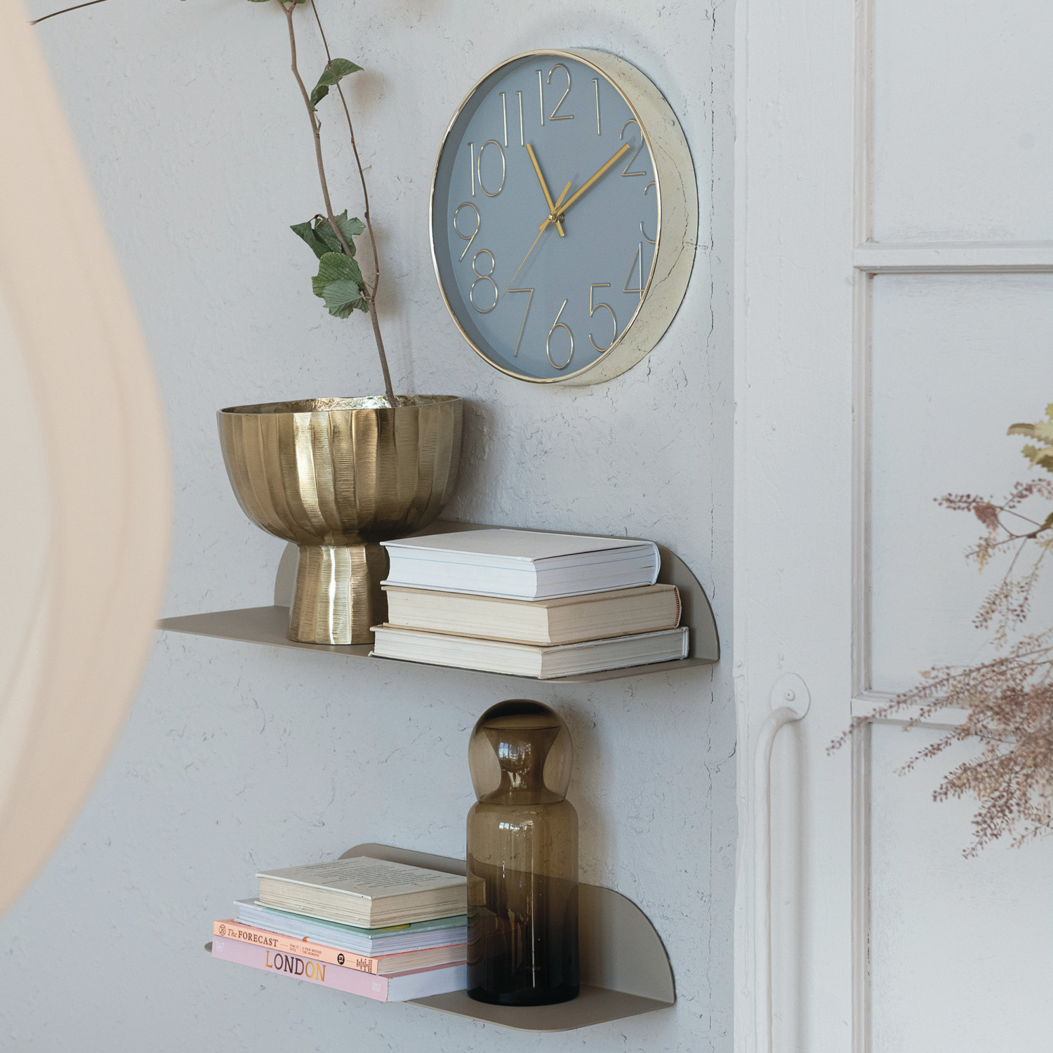 This Aureate Hour Wall Clock is the epitome of functional art. Its minimalist design, highlighted by a grey backdrop and tasteful gold finishing, offers a subtle yet striking aesthetic that complements any room. The clock's plastic construction promises longevity, while its 12-inch diameter makes it a versatile fit for walls of any size. A single AA battery powers the clock, ensuring timekeeping is consistent and reliable. Complete with a keyhole hook, it's designed for effortless installation, ready to elevate any space with its timeless charm. The clock's silent quartz movement ensures a peaceful environment without the distraction of ticking. Its sleek design and high-quality materials make it a sophisticated addition to any home or office decor.