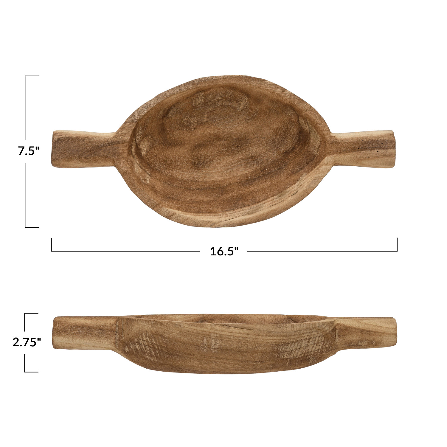 Catalog Name: 16-1/2"L x 7-1/2"W x 2-3/4"H Decorative Paulownia Wood Tray w/ Handles, Natural
