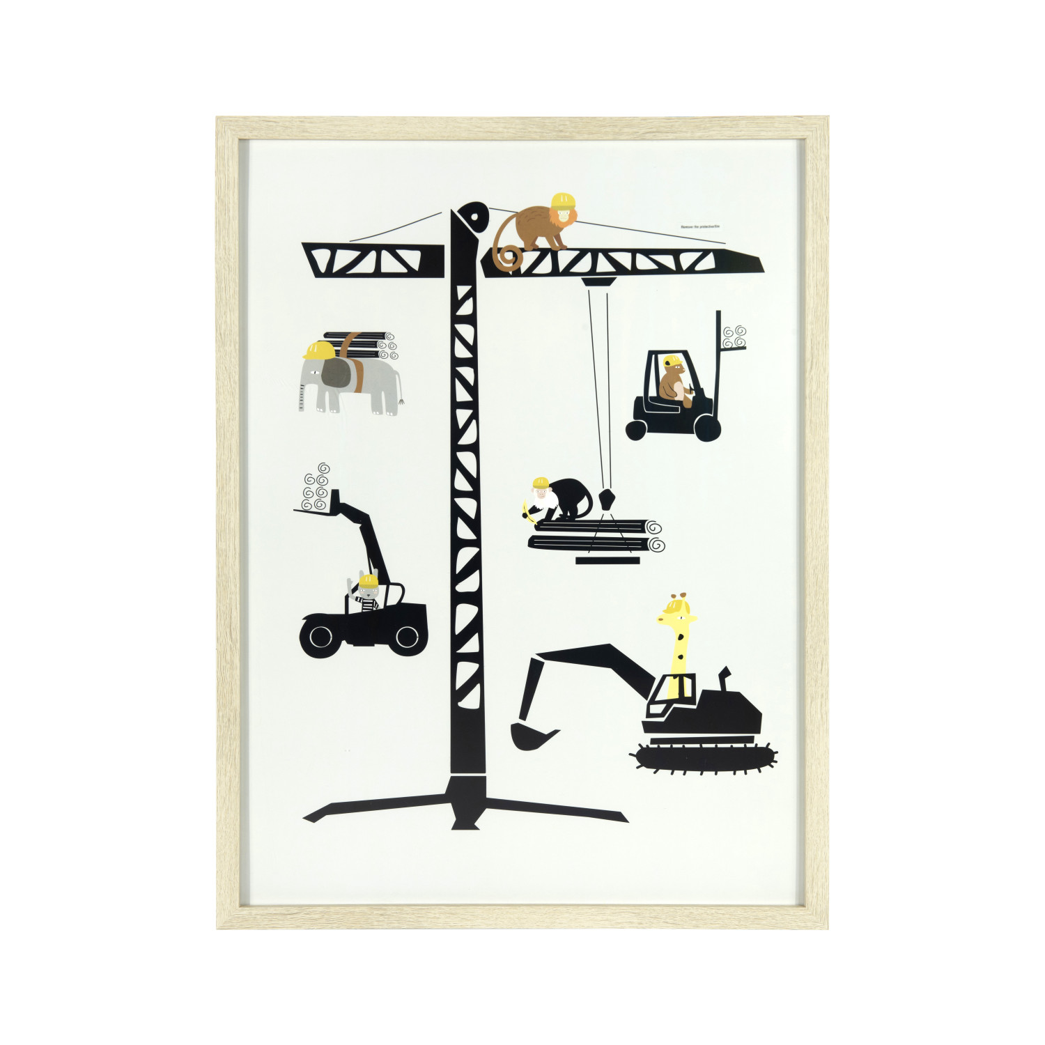 Children love to build and what better help than working alongside fun-loving animals. Spur a child's imagination with this construction wall art. Place near a shelf or table with construction toys of the same type in the picture.
