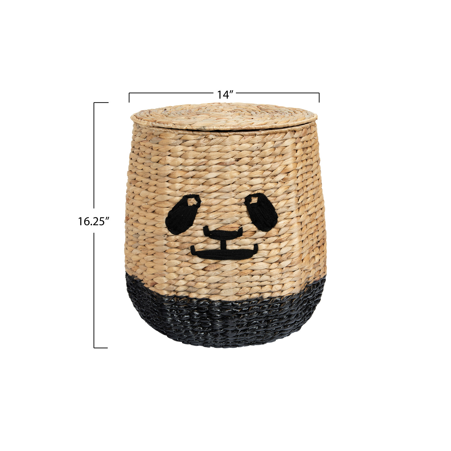 Catalog Name: 14" Round x 16-1/4"H Hand-Woven Rattan Basket w/ Lid & Panda Face, Natural & Black, Truck Ship