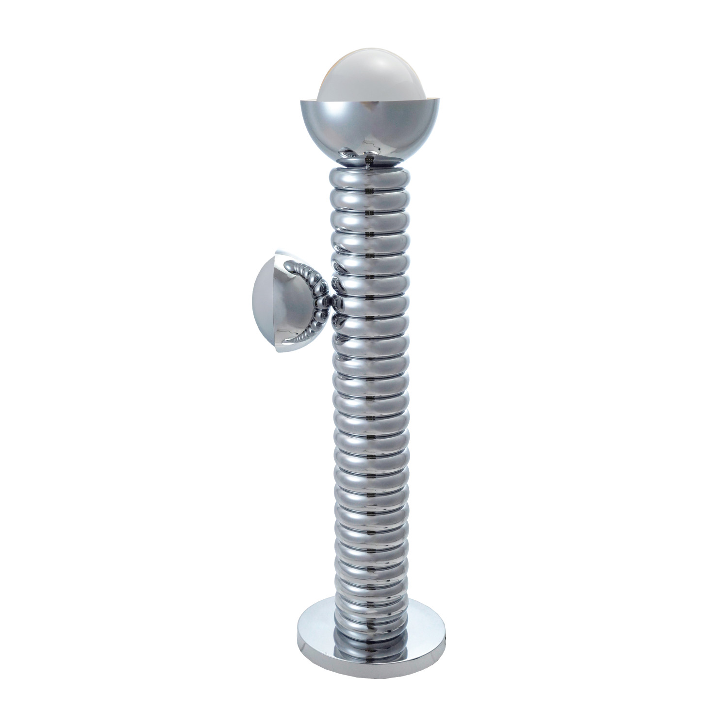 Catalog Name: 16-3/4" Round x 45-1/2"H Metal Ribbed Double Floor Lamp w/ Glass Globes & Inline Switch, Chrome Finish, Truck Ship