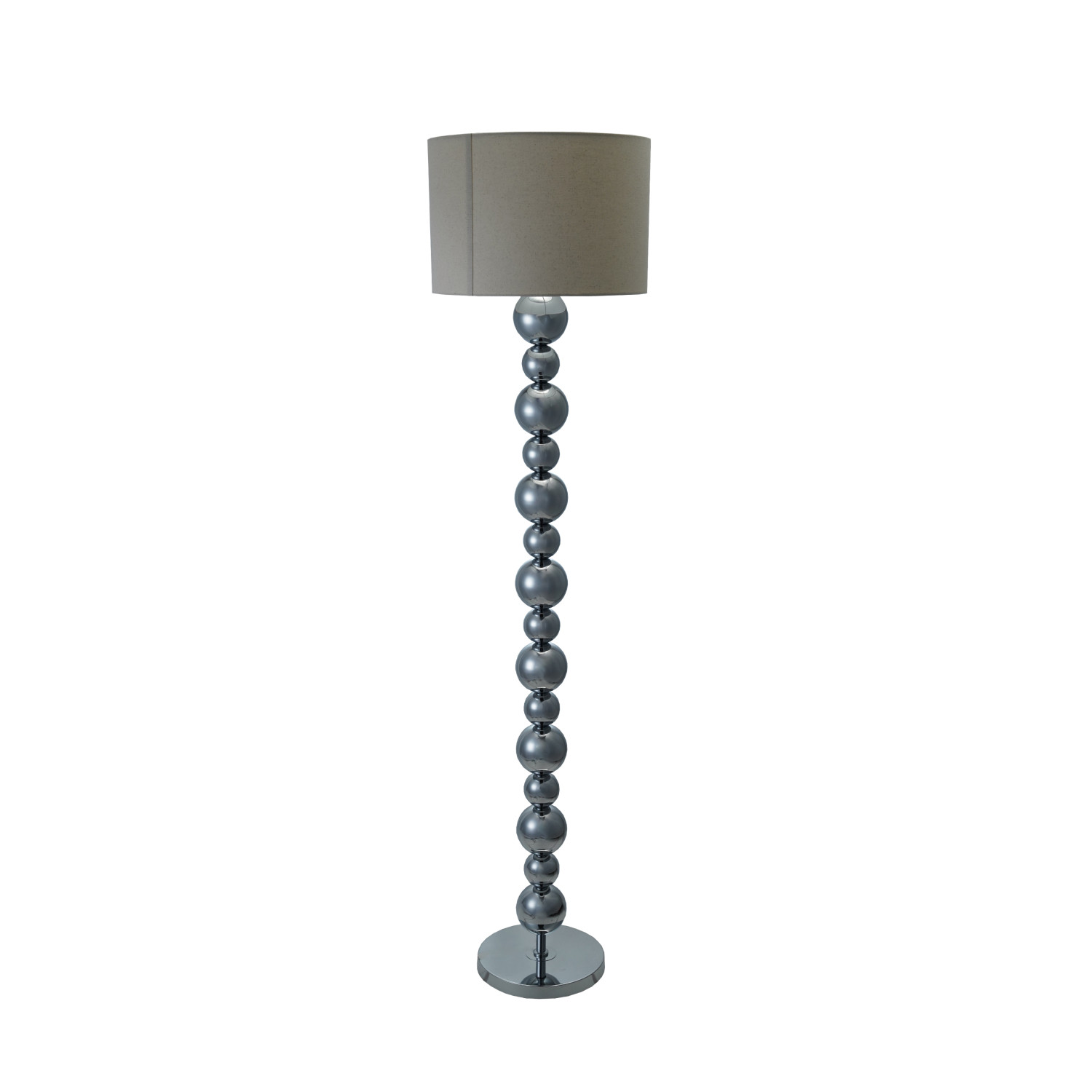 Catalog Name: 17-3/4" Round x 61"H Metal Stacked Ball Floor Lamp w/ Linen Shade & Inline Switch, Chrome Finish, KD