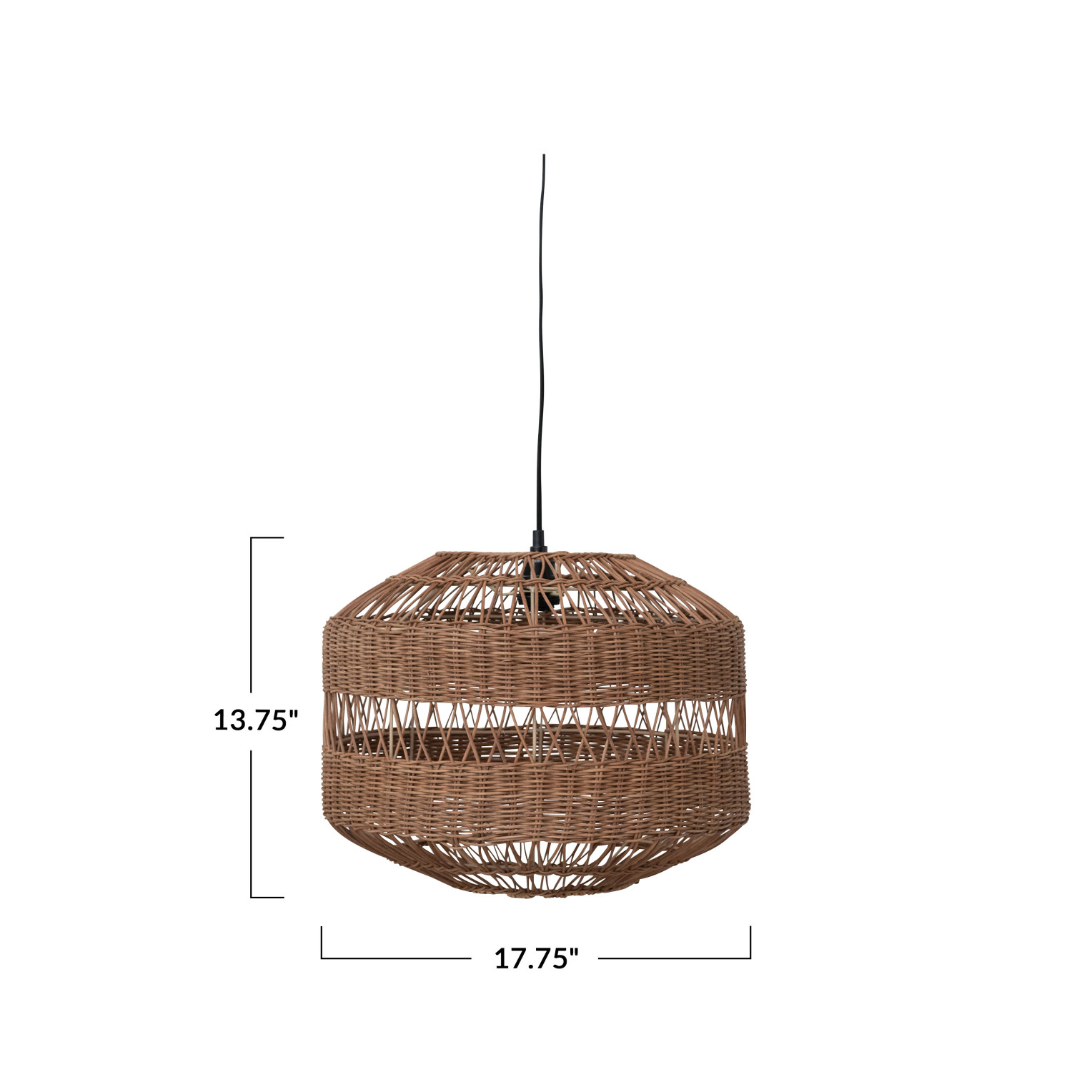 Catalog Name: 17-3/4" Round x 13-3/4"H Hand-Woven Rattan Pendant Lamp, 9' Cord, Natural (Hardwire Only)