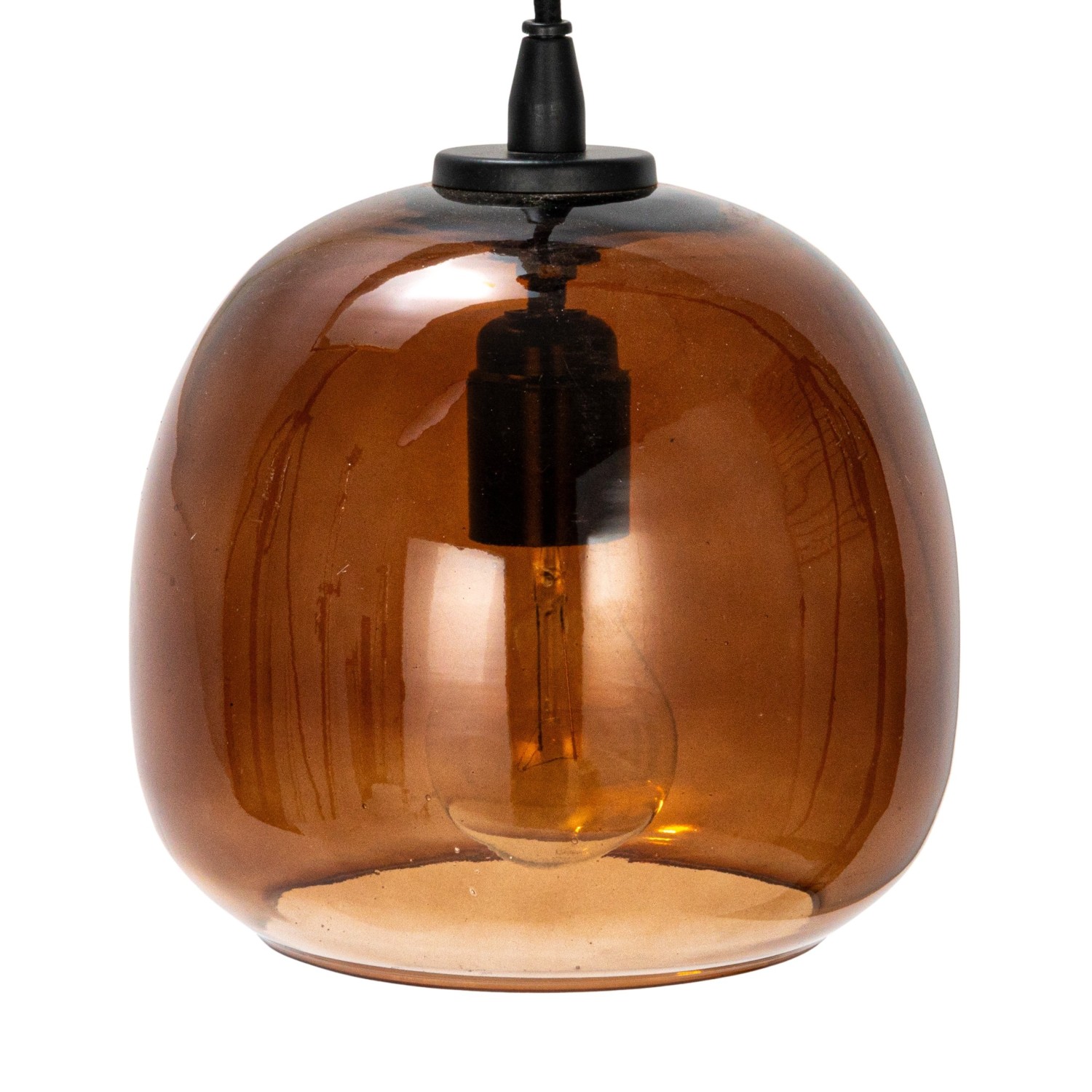 Catalog Name: 7-1/2" Round x 8-1/4"H Glass & Metal Pendant Lamp, 5-1/2' Fabric Cord, Amber Color (Hardwire Only)