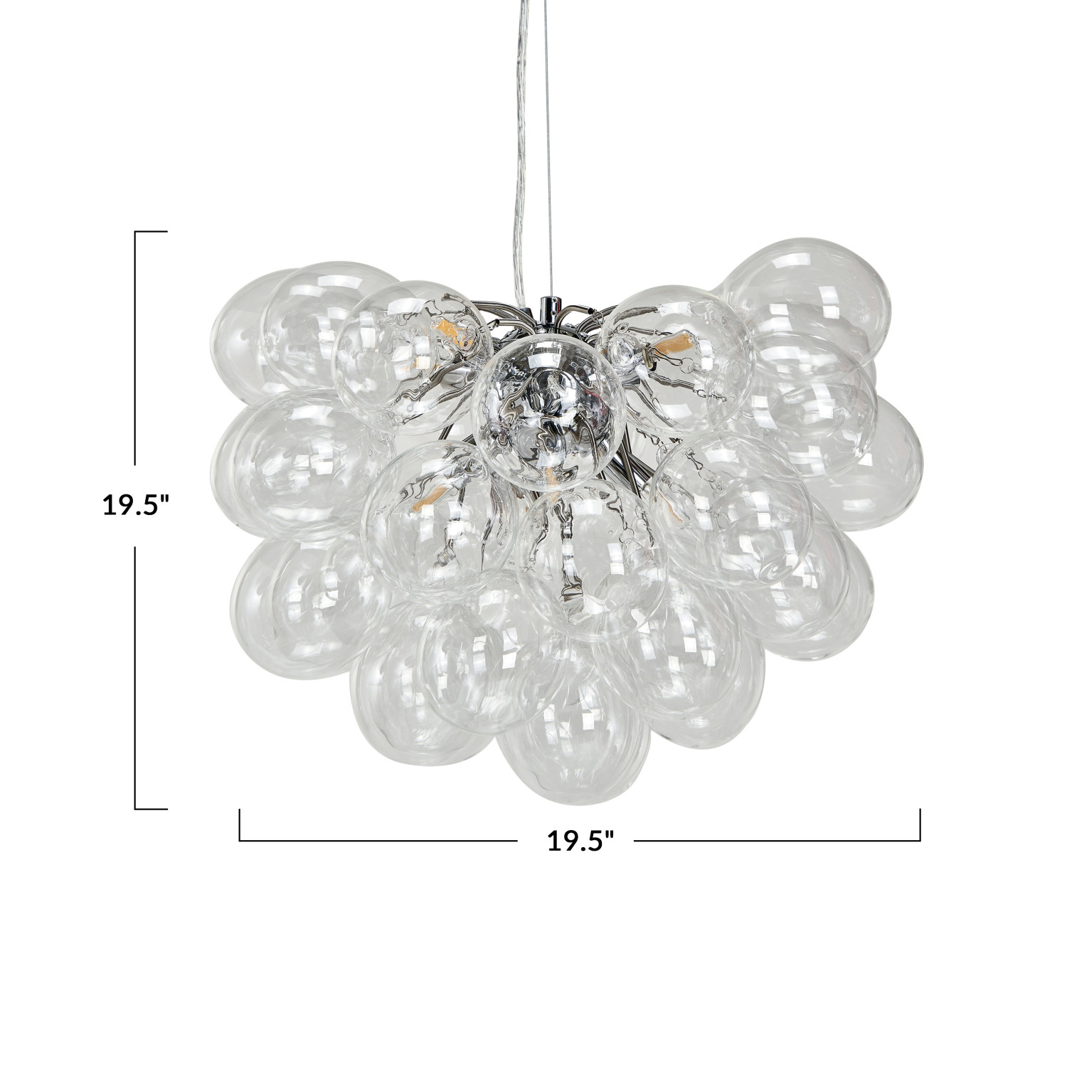 Catalog Name: 19-1/2" Round x 19-1/2"H Glass Bulb & Metal Pendant Lamp w/ 8 Lights, 6' Cord, KD (Hardwire Only)