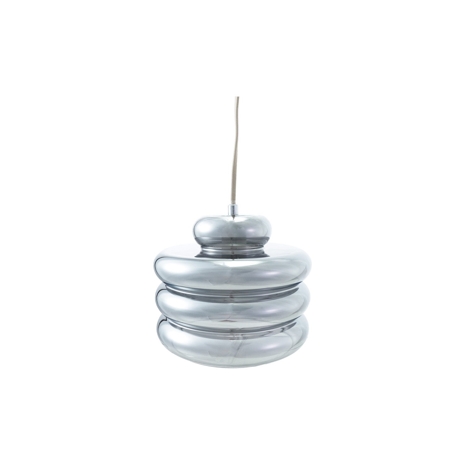 Catalog Name: 9-1/2" Round x 7-3/4"H Glass & Metal Ribbed Pendant Lamp, 6' Fabric Cord, Chrome Finish (Hardwire Only)