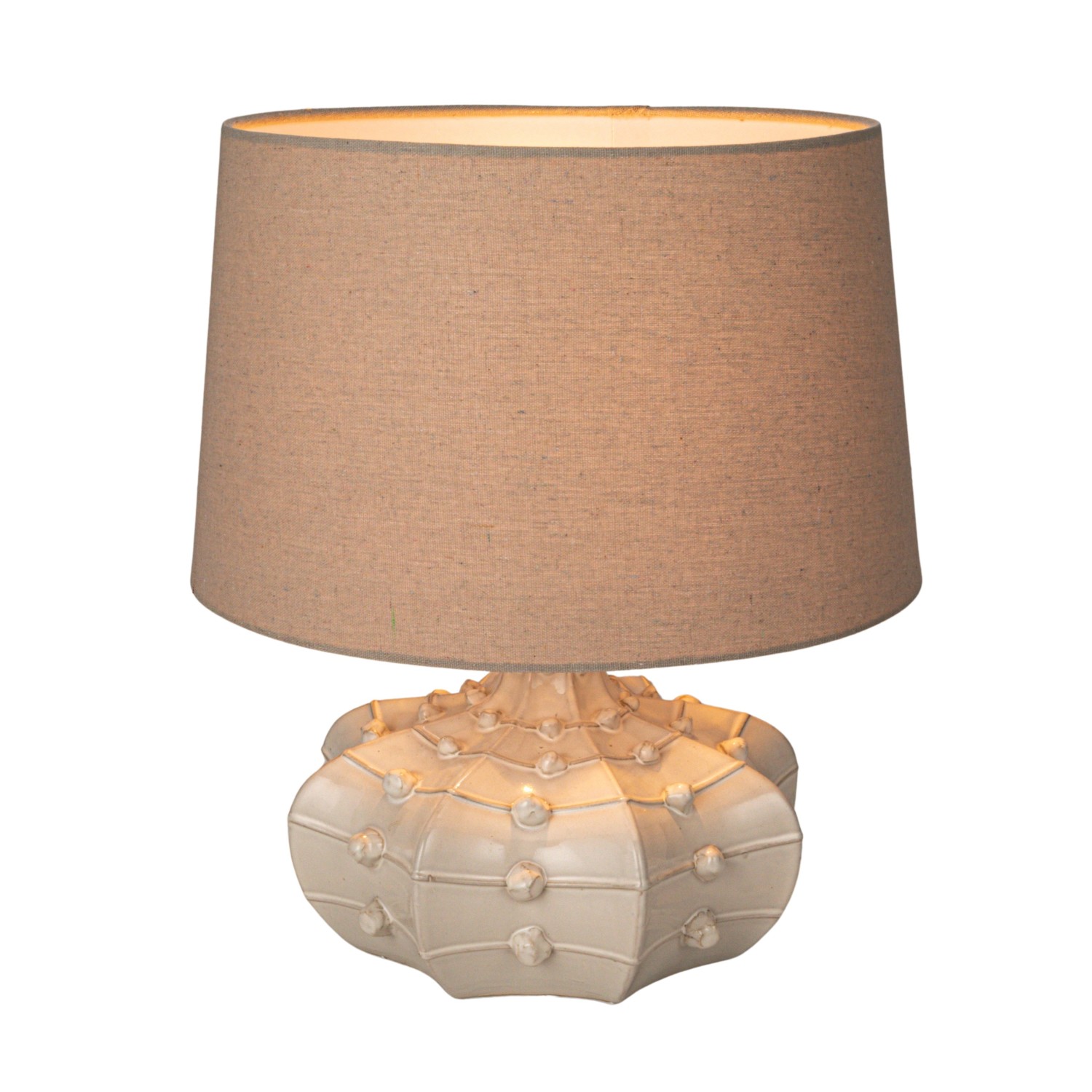 Catalog Name: 16" Round x 18-1/2"H Stoneware Hobnail Fluted Table Lamp w/ Linen Shade & Inline Switch, White