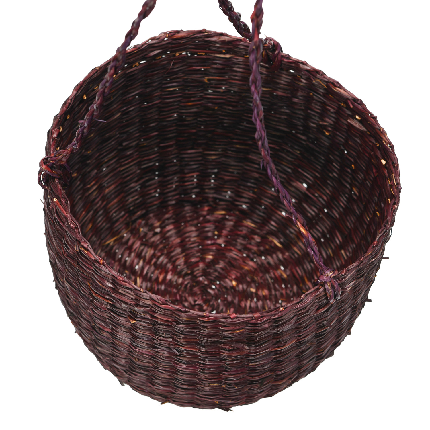 Catalog Name: 8" Round x 6-3/4"H Hanging Hand-Woven Seagrass Basket/Planter, Eggplant Color (Holds 7" Pot)