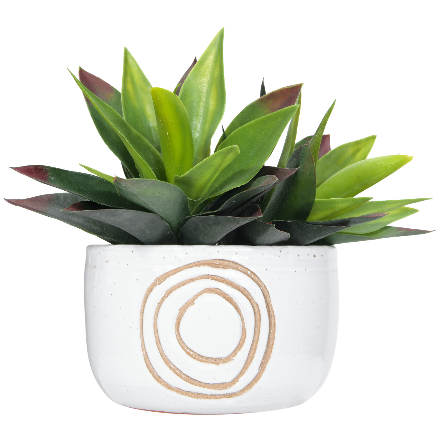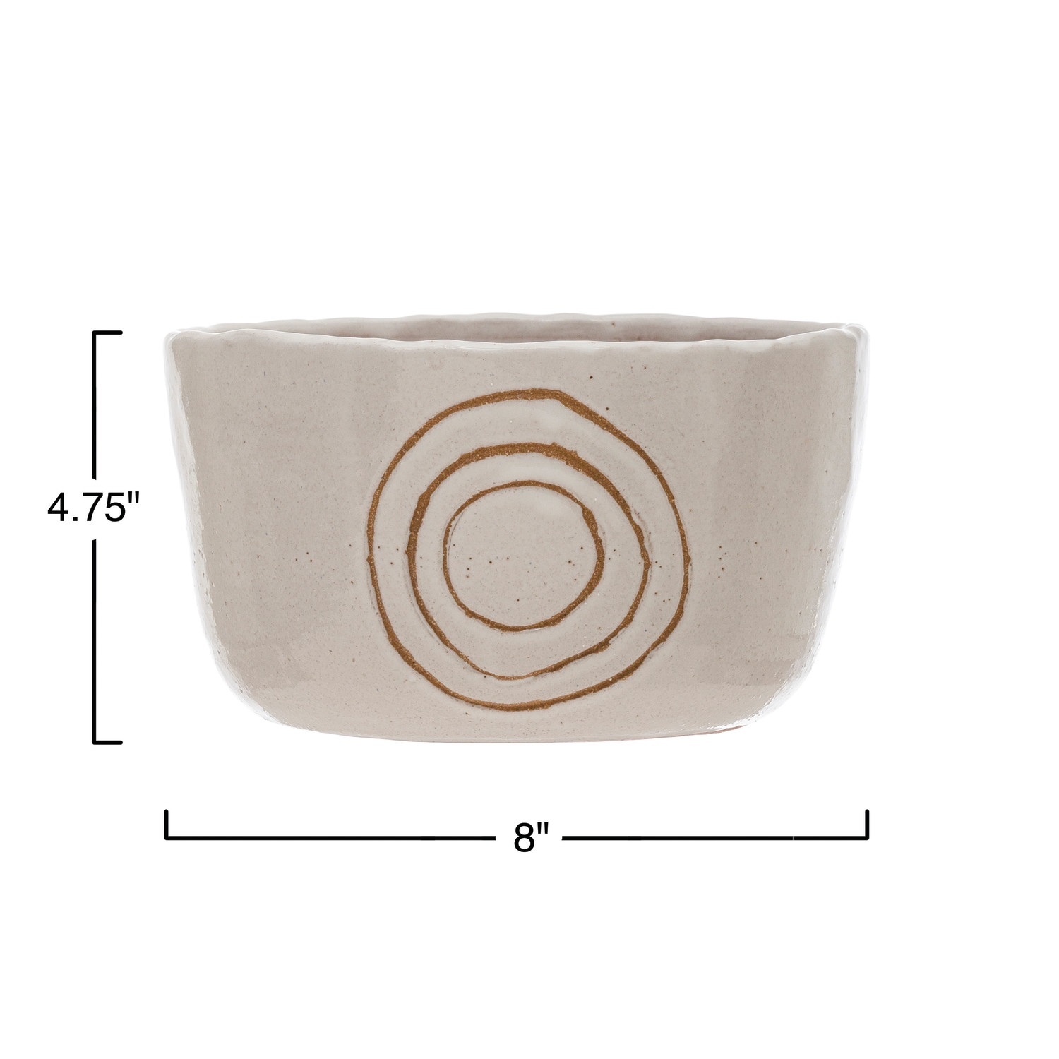 Catalog Name: 8" Round x 4-3/4"H Terra-cotta Planter w/ Engraved Circles, Sand Color (Holds 6" Pot)